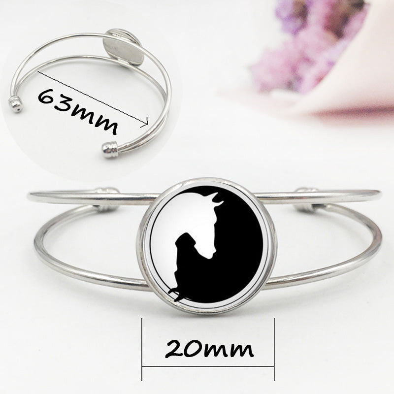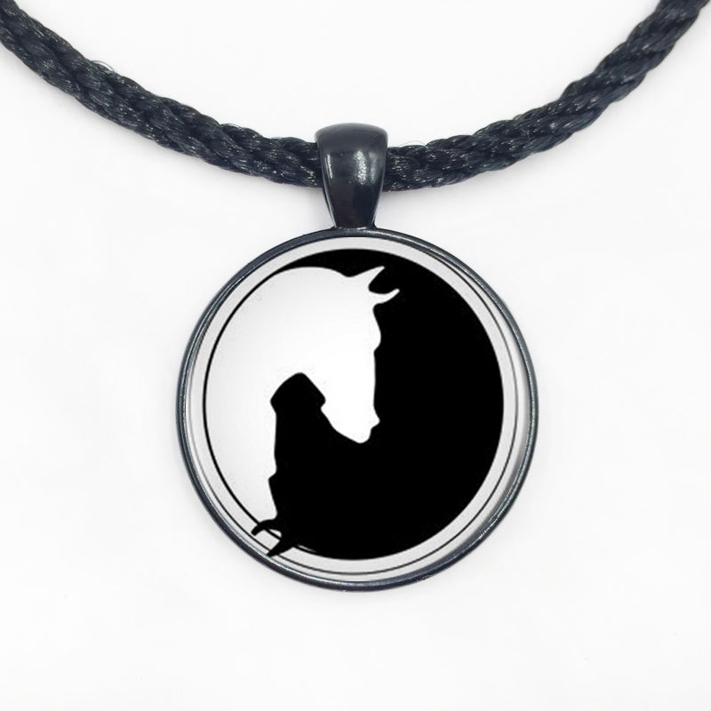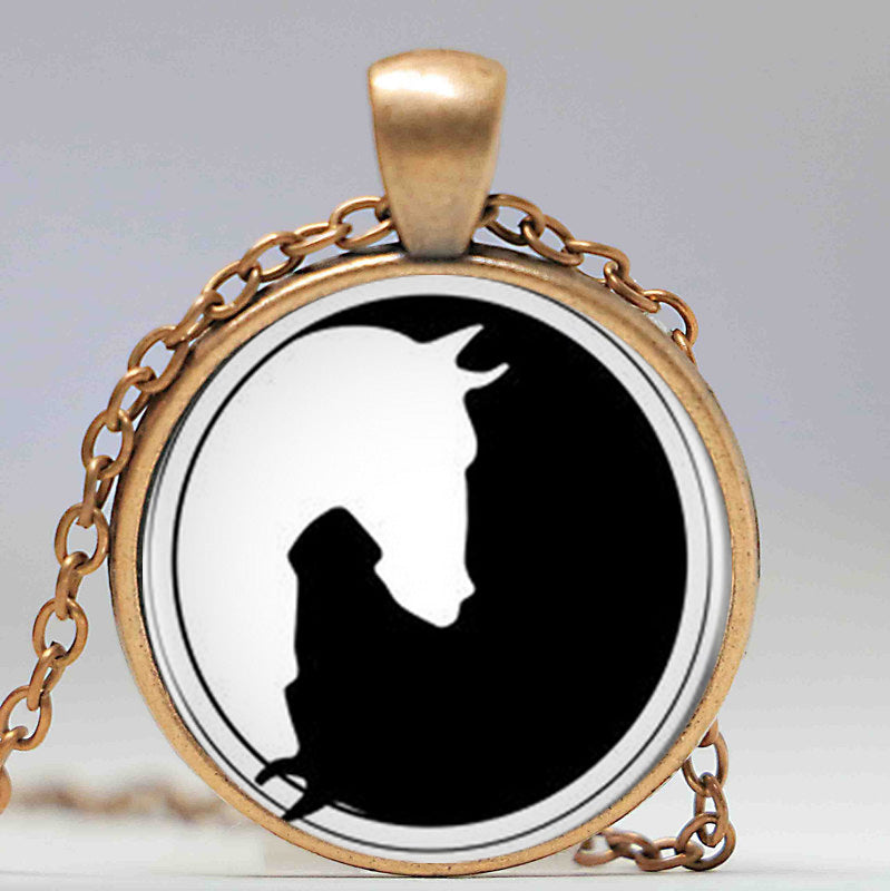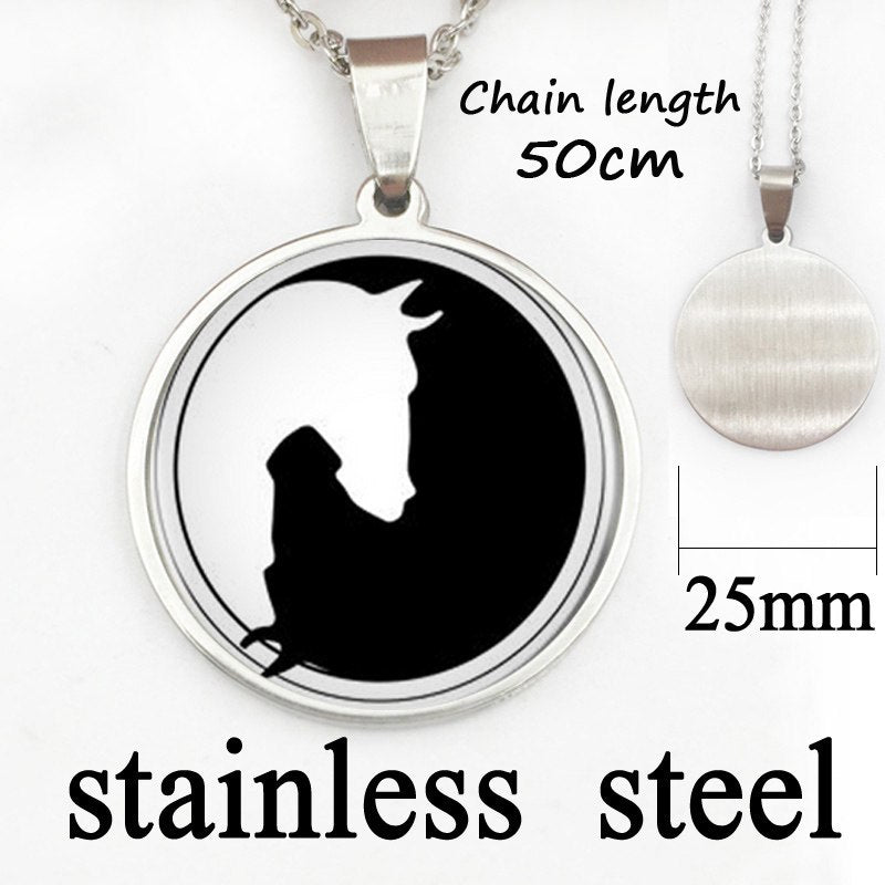Yin Yang Horse Logo 2Styles Silver Pendant Necklace Long Chian Statement Handmade Necklace For Women
