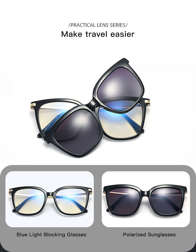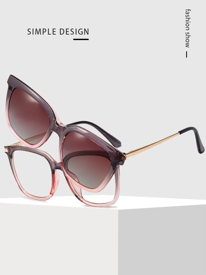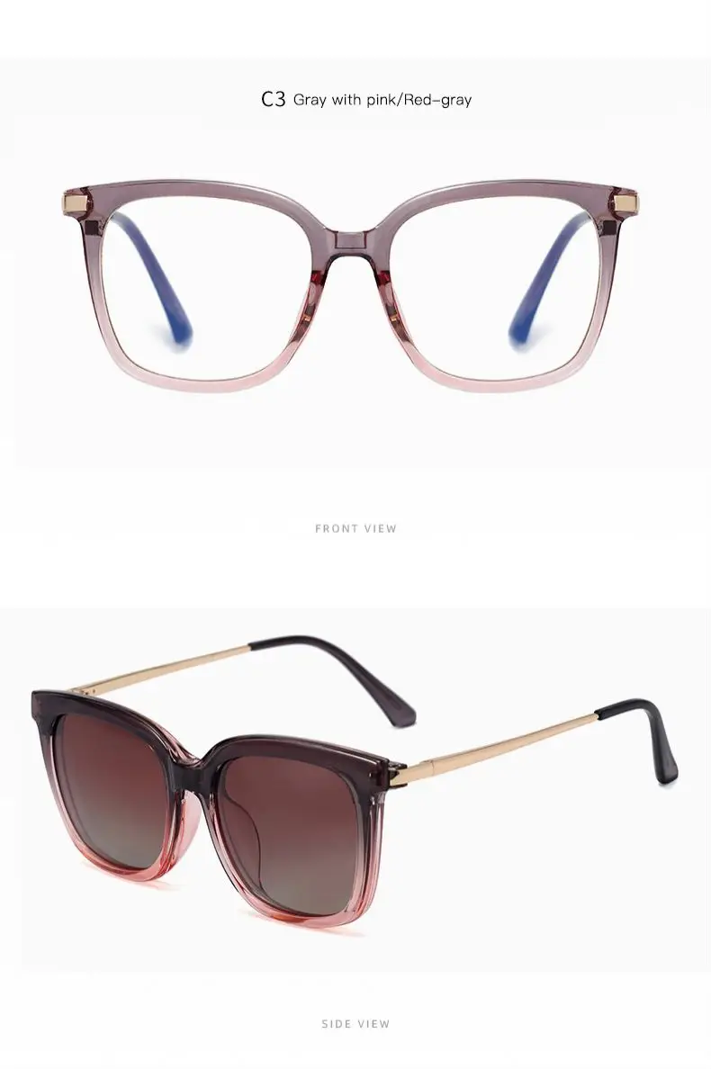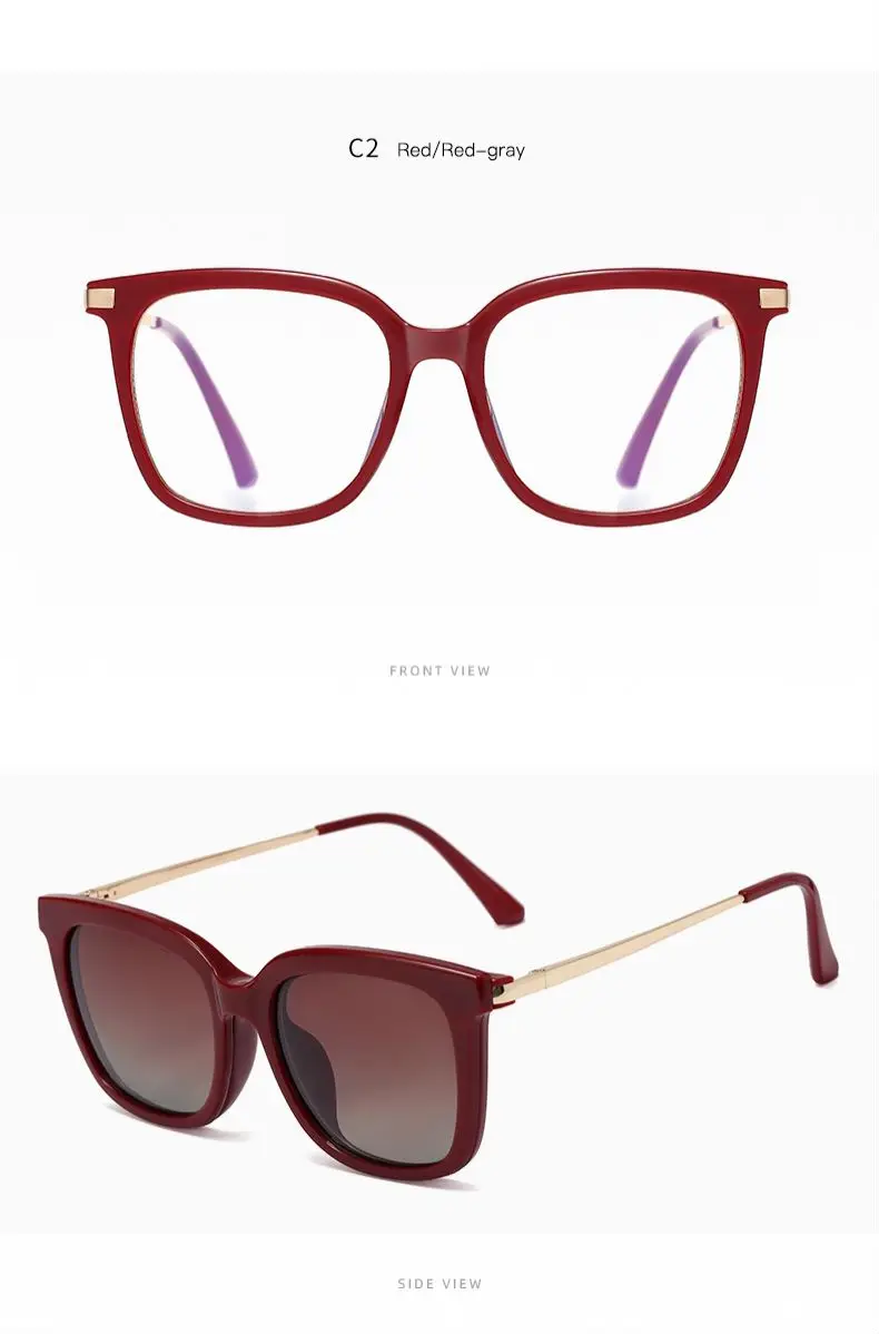 2 in 1 Polarized Magnet Clip On Eyeglasses Frame for Women TR90 Cat Eye Optical Glasses Frame Female Myopia Prescription