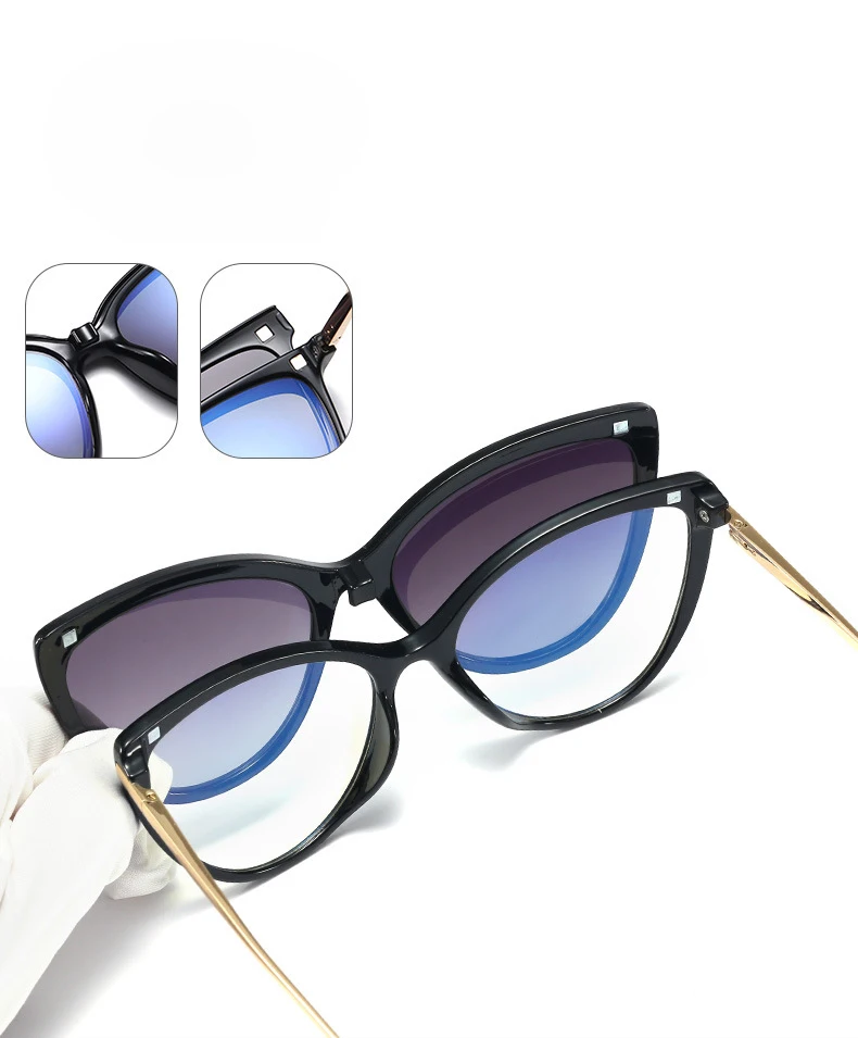 2023 Magnetic Clip on Polarized Sunglasses Women Transparent Anti Blue Light Glasses Frame Women's Eyeglasses Drivin