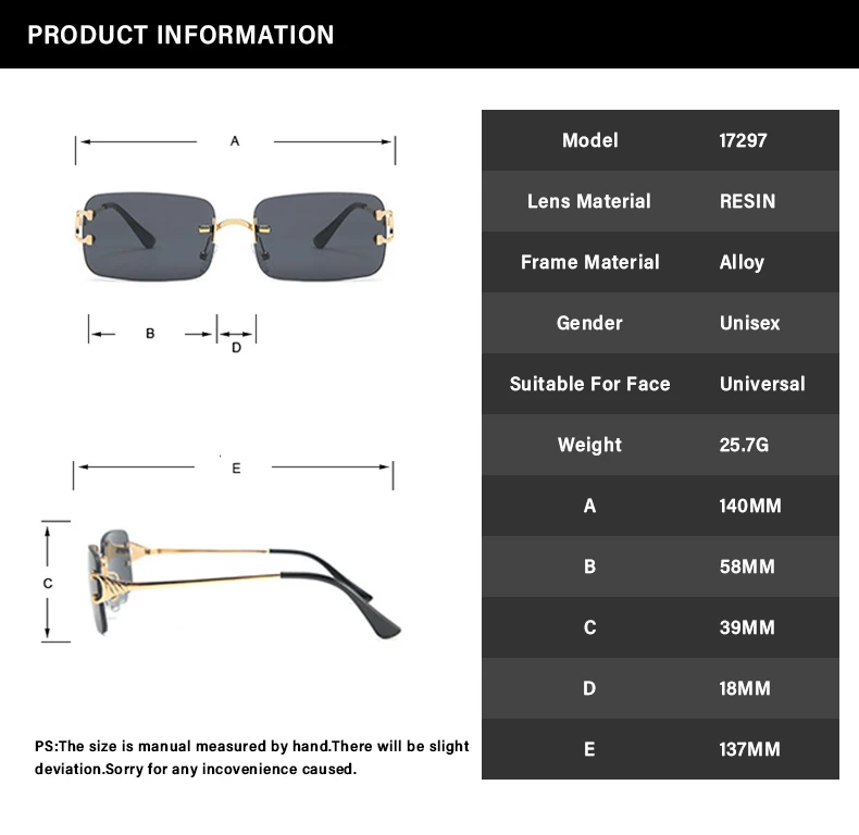 Style 1 : rectangle sunglasses rimless