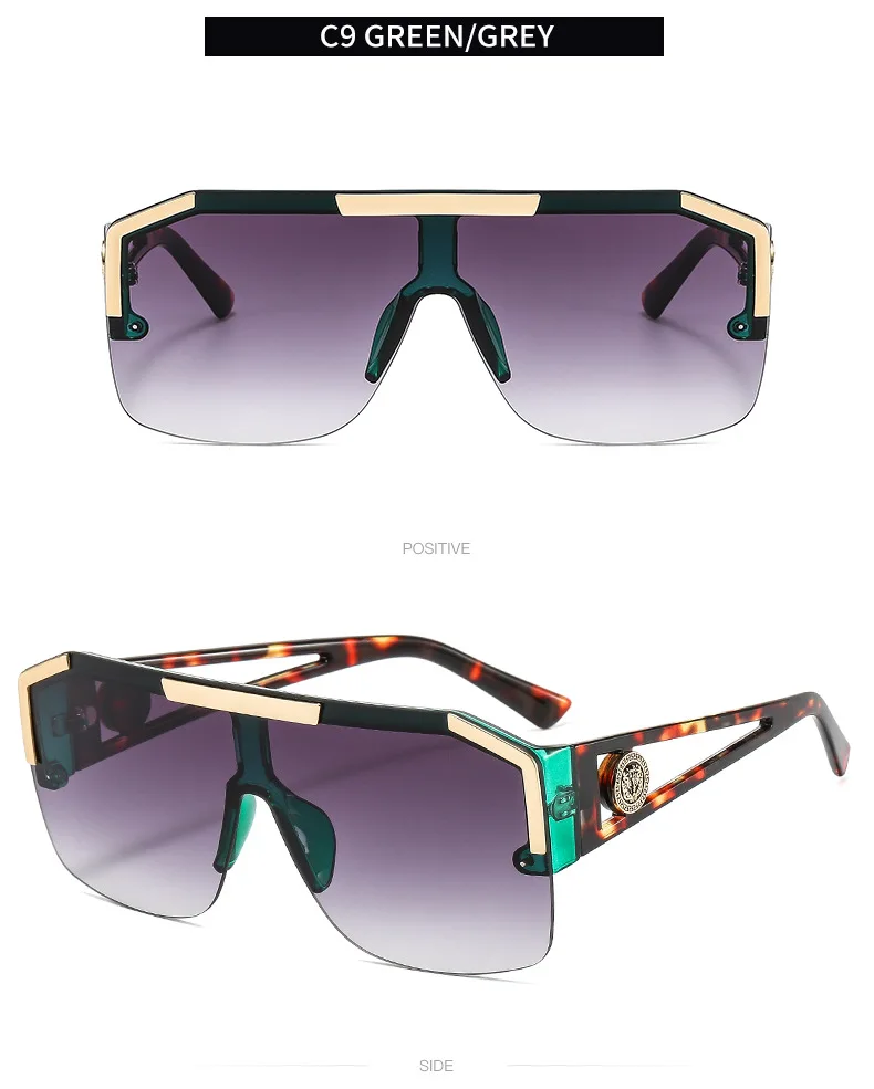 2023  Brand Designer Oversized Square Sunglasses Men Women Retro Big Frame Semi-Rimless Driving Sun Glasses UV400