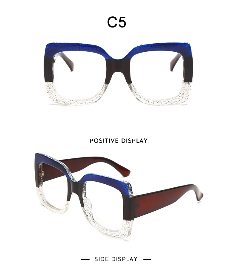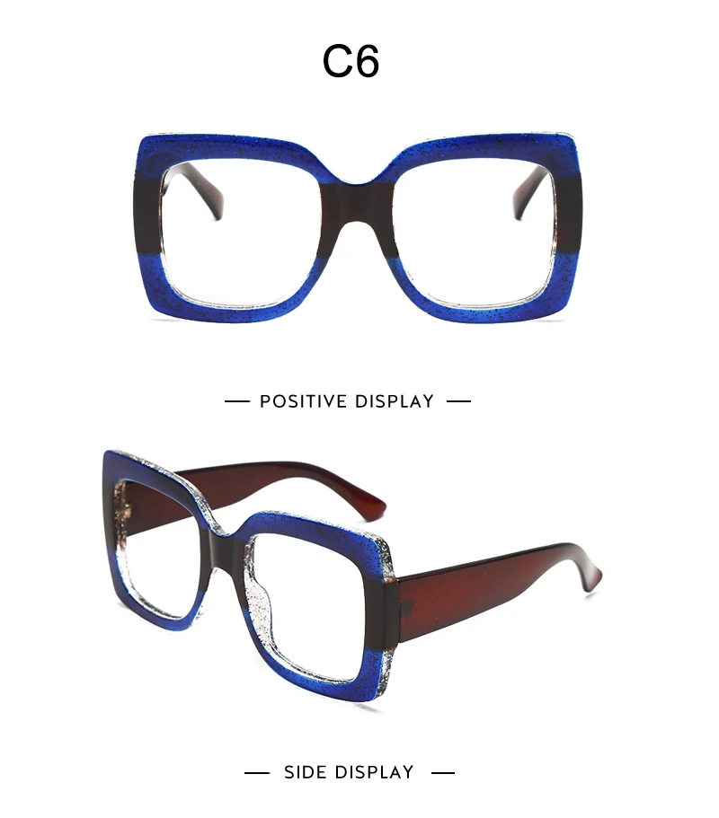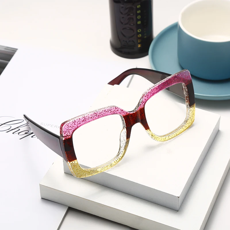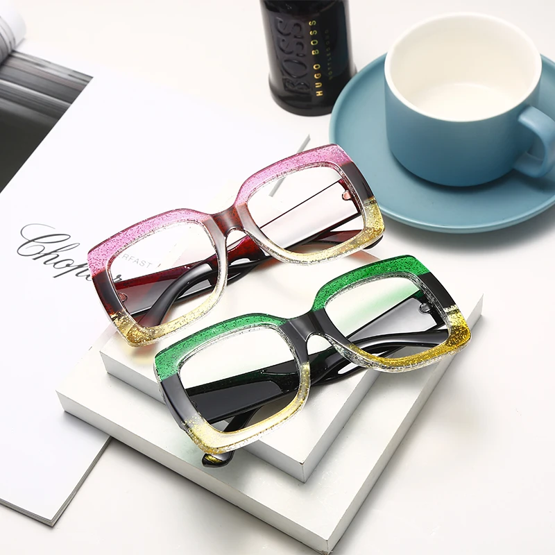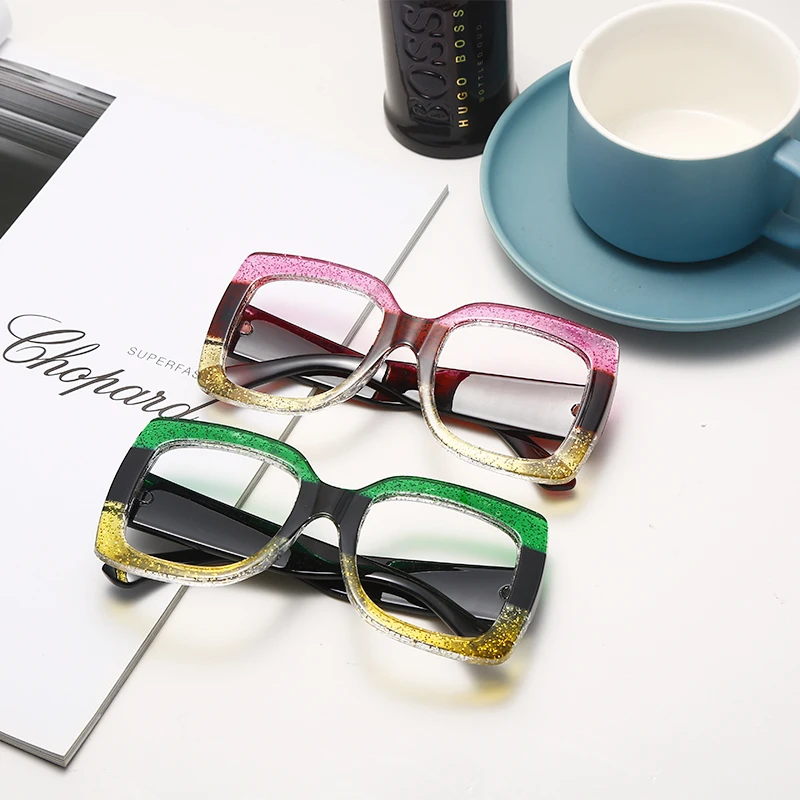 2023 Ladies Anti-Blue Light Glasses Retro Square Three-Color Big Frame Men's Flat Glasses Frame Myopia Glasses Hot