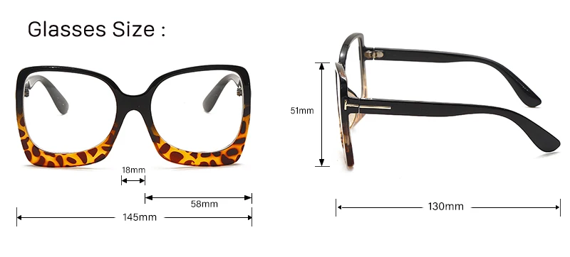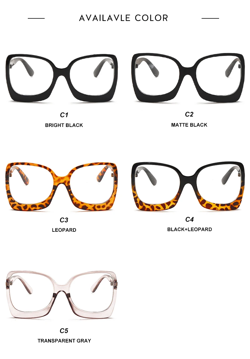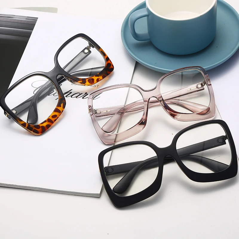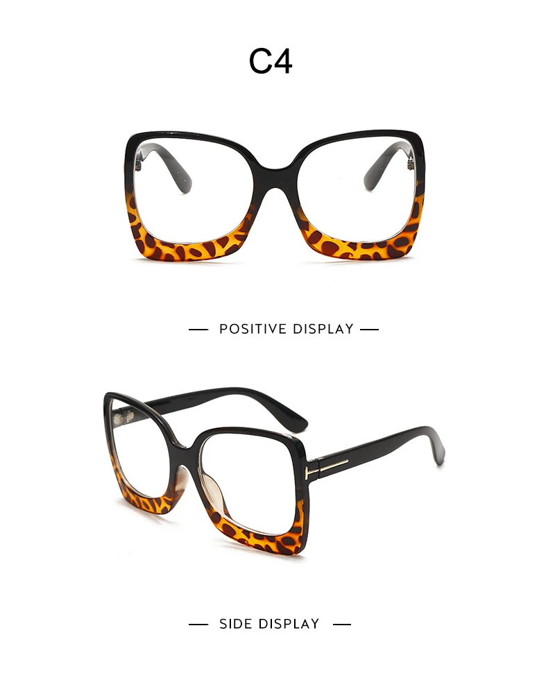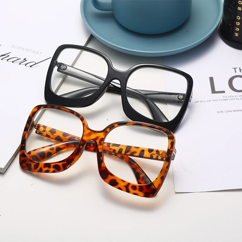 2023 Latest Flat Glasses Ladies Square Big Frame Leopard Gradient Leopard Print Frame Retro Female Myopia Glasses Hot