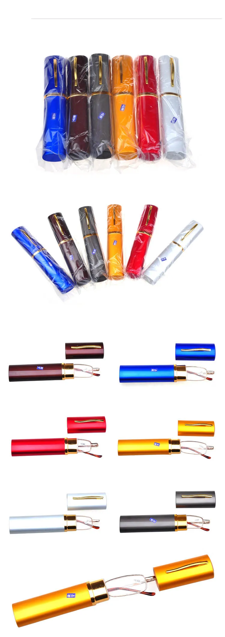 2023 Pen Holder Reading Glasses Metal Small Frames Reading Mirror Light Portable Unisex Eyewear Accessories
