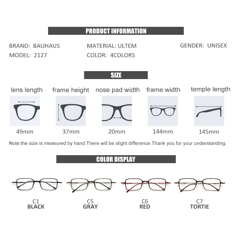 2127 bauhaus trendy stylish square slime eyeglasses frame optical