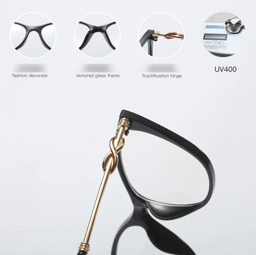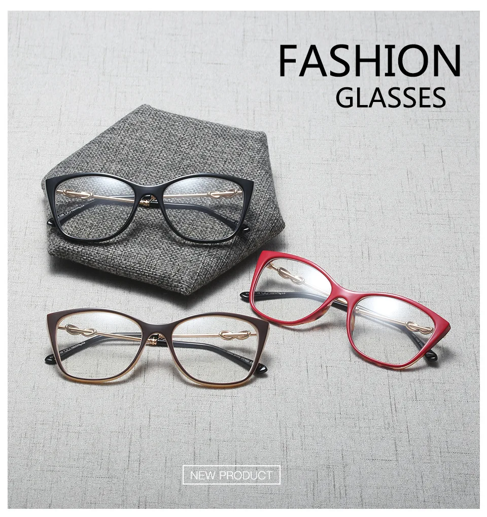 45649 Women Cat Eye Glasses Frames Rope Knot Metal Temple Trending Styles Optical Computer Glasses