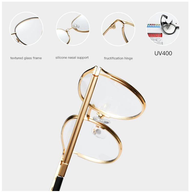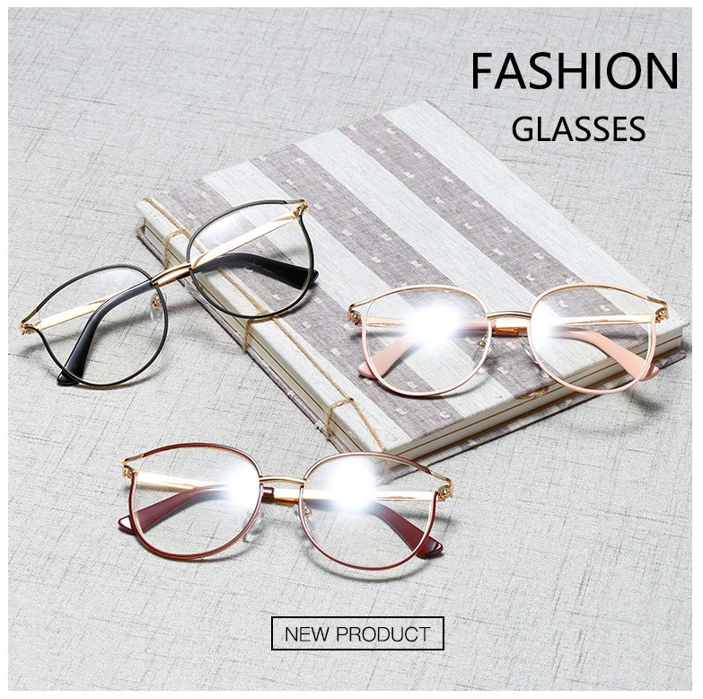 45962 Anti-Blue Light Cat Eye Metal Round Glasses Frames Women Optical Computer EyeGlasses