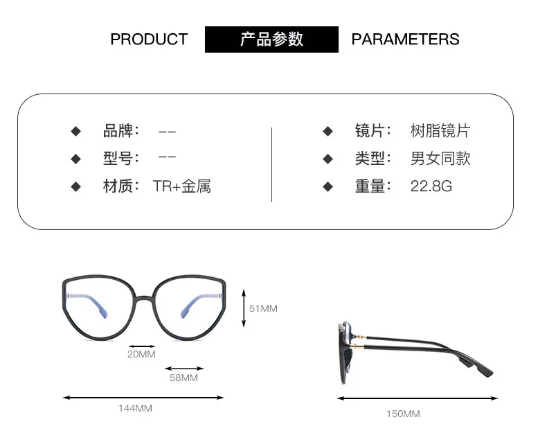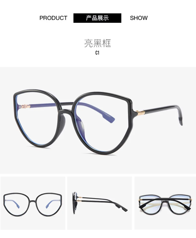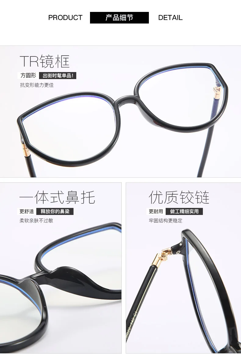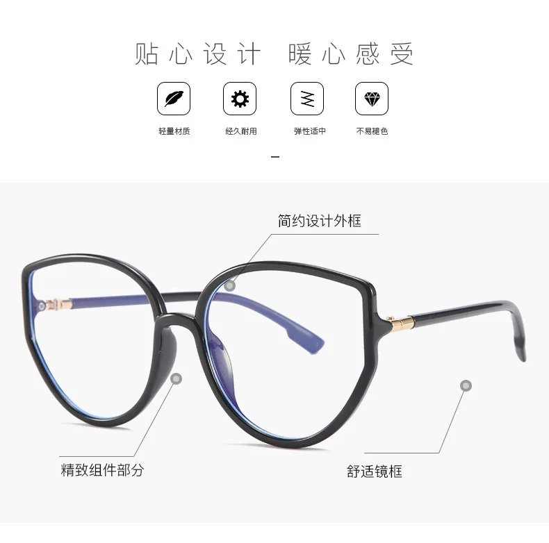 46601 TR90 Oversized Cat Eye Anti Blue Glasses Frames Men Women Optical Computer Glasses