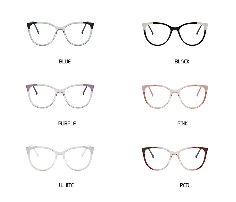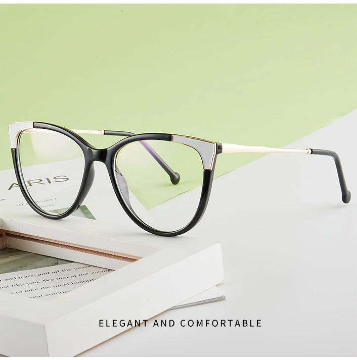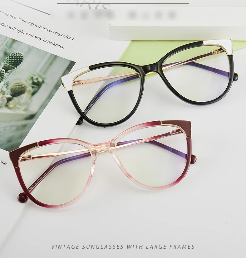 46942 Plastic Titanium Cat Eye Anti Blue Light Optical Glasses Frames Women TR90 Computer Eyeglasses