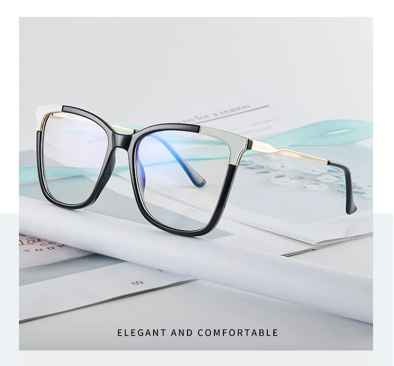 46963 Plastic Titanium Cat Eye Anti Blue Light Optical Glasses Frames Women TR90 Computer Eyeglasses