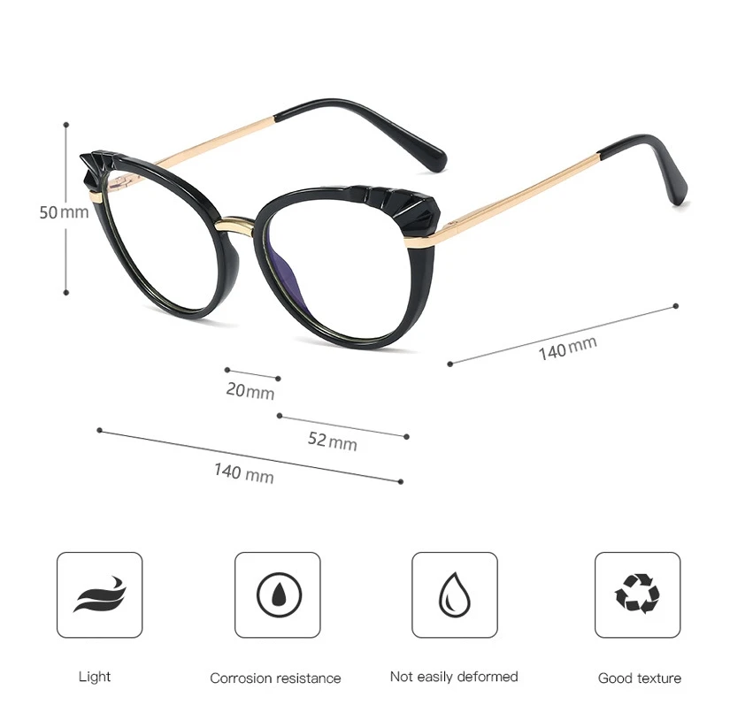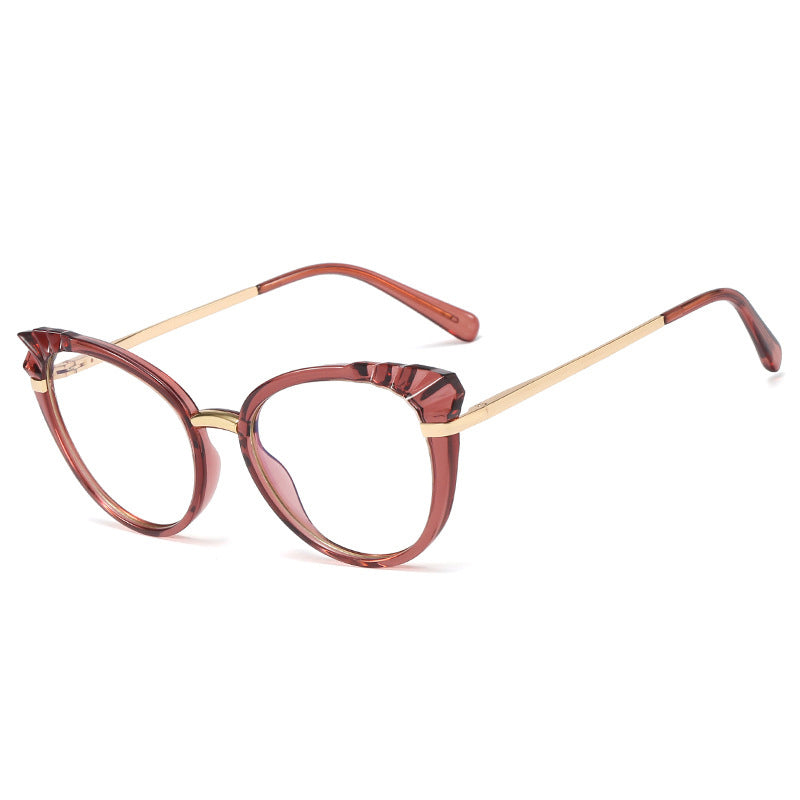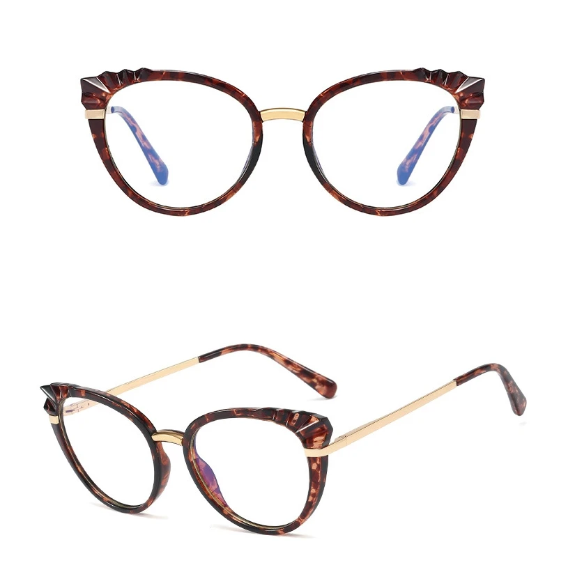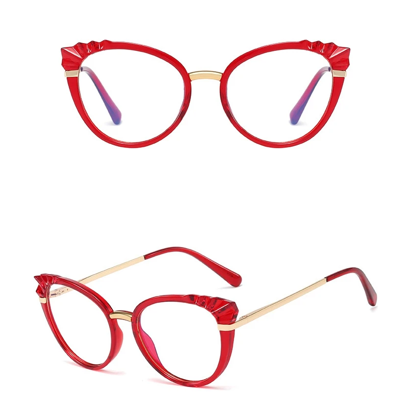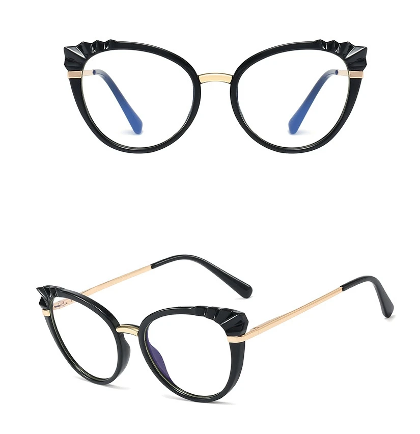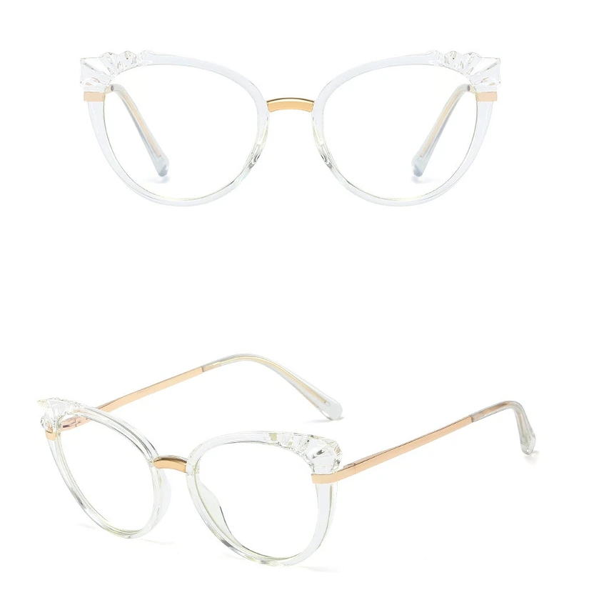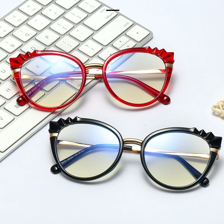 48204 Roun Cat Eye Anti-Blue Light Women Optical Glasses Frame Diamond Cut Computer