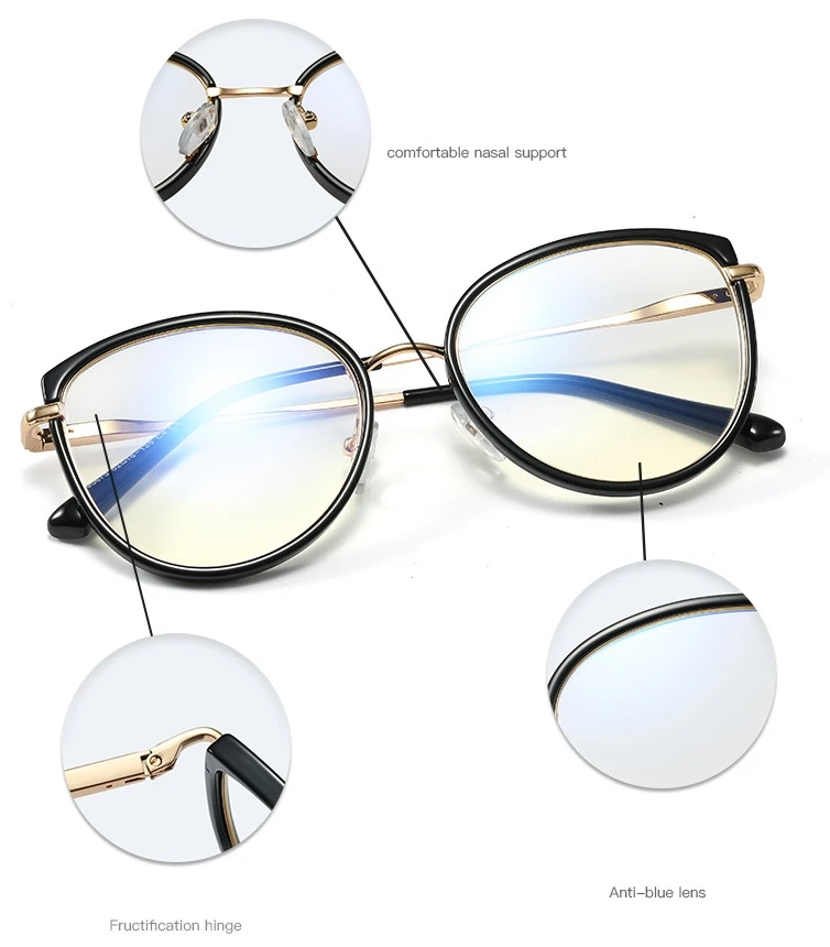 48253 Cat Eye Plastic Titanium Glasses Frames Anti Blue Men Women Optical Computer Glasses