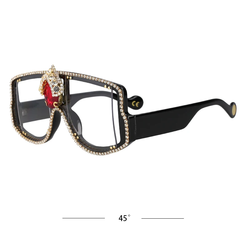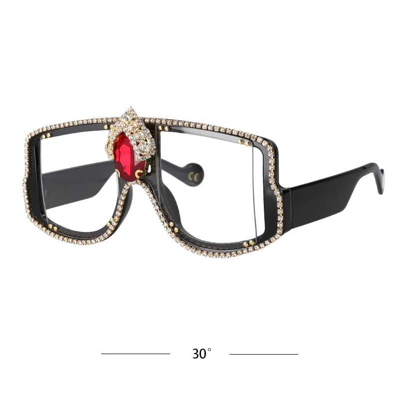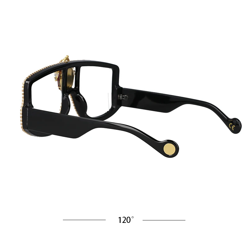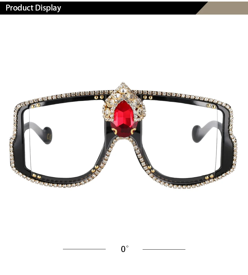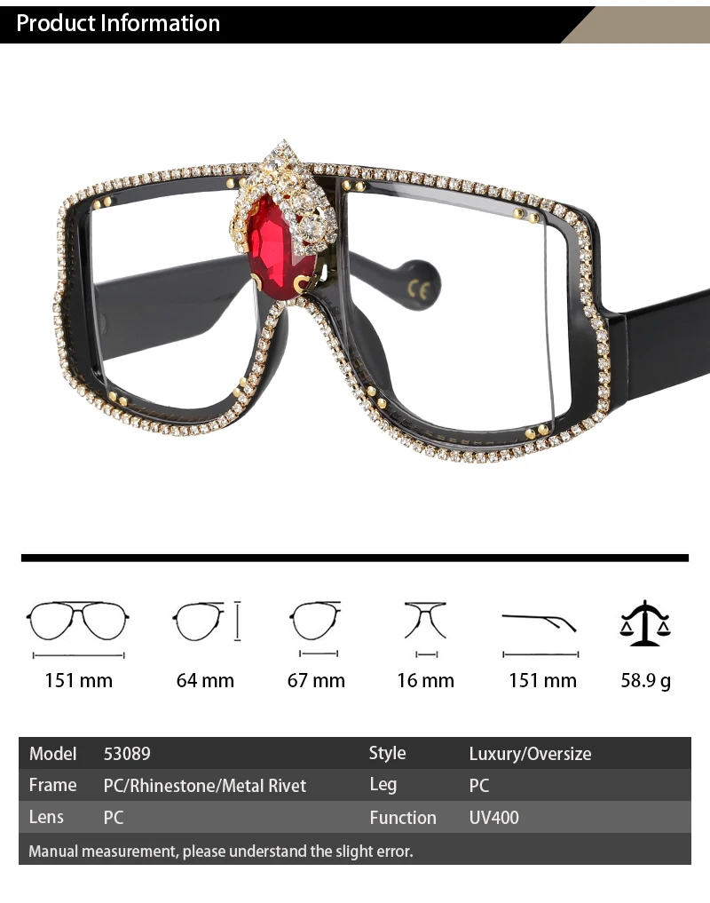 53089 Oversize Lady Sunglasses Rhinestone Rivet Frame Charm Women Shade Uv400
