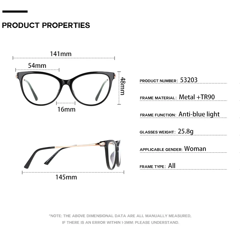 53203 Tr90 Anti Blue Light Diamond  Optical Glasses Frames Men Women Computer Eyeglasses