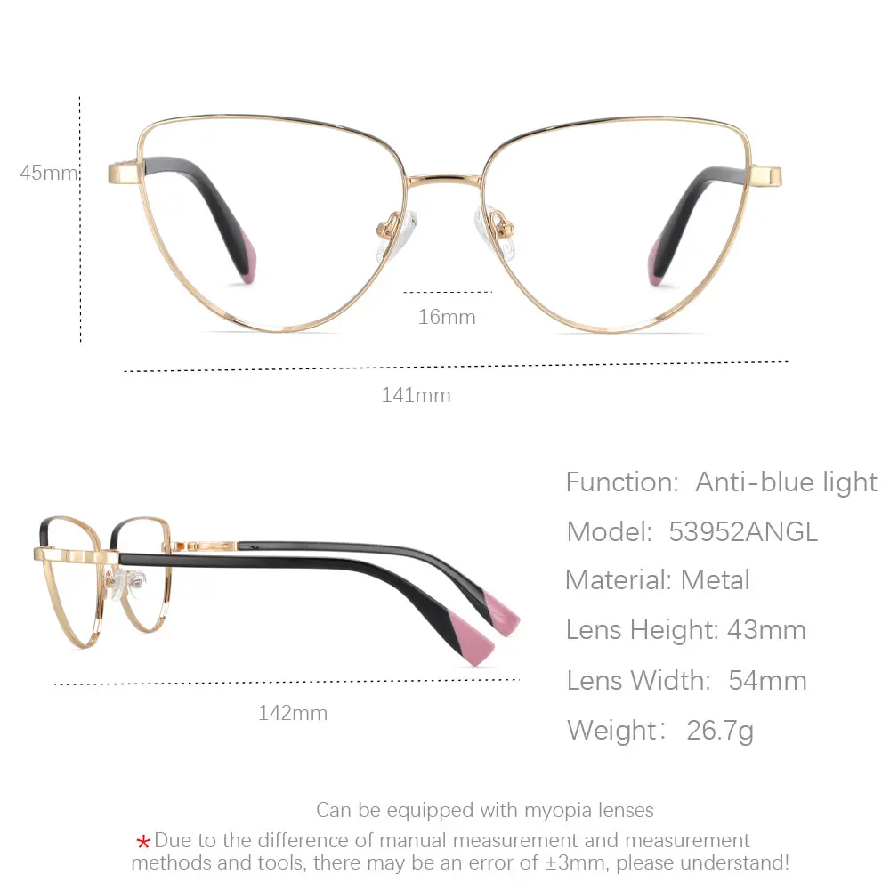 53952 Sexy Cat Eye Anti Blue Light Metal Optical Glasses Frames Men Women Computer Eyeglasses