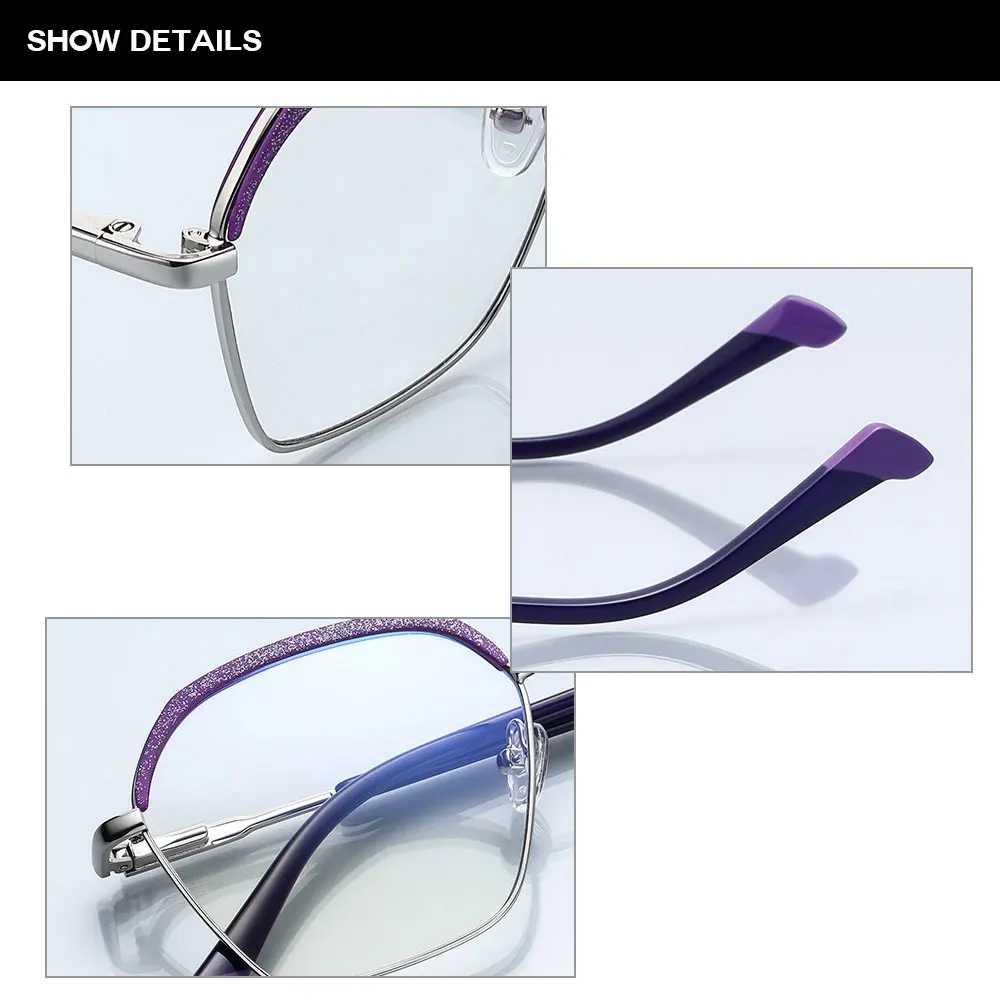 54101 Retro Metal Anti Blue Light Optical Eyebrow Glasses Frames Women Computer Eyeglasses