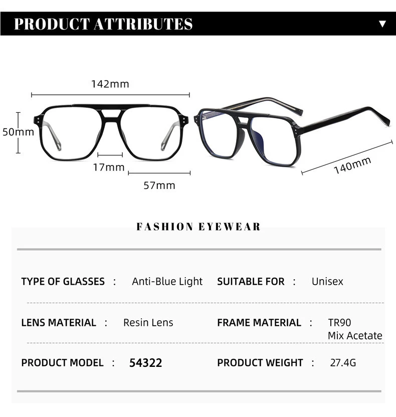 54322 Big Frame Anti Blue Light Glasses Frames Men Women Square TR90 Computer Eyeglasses