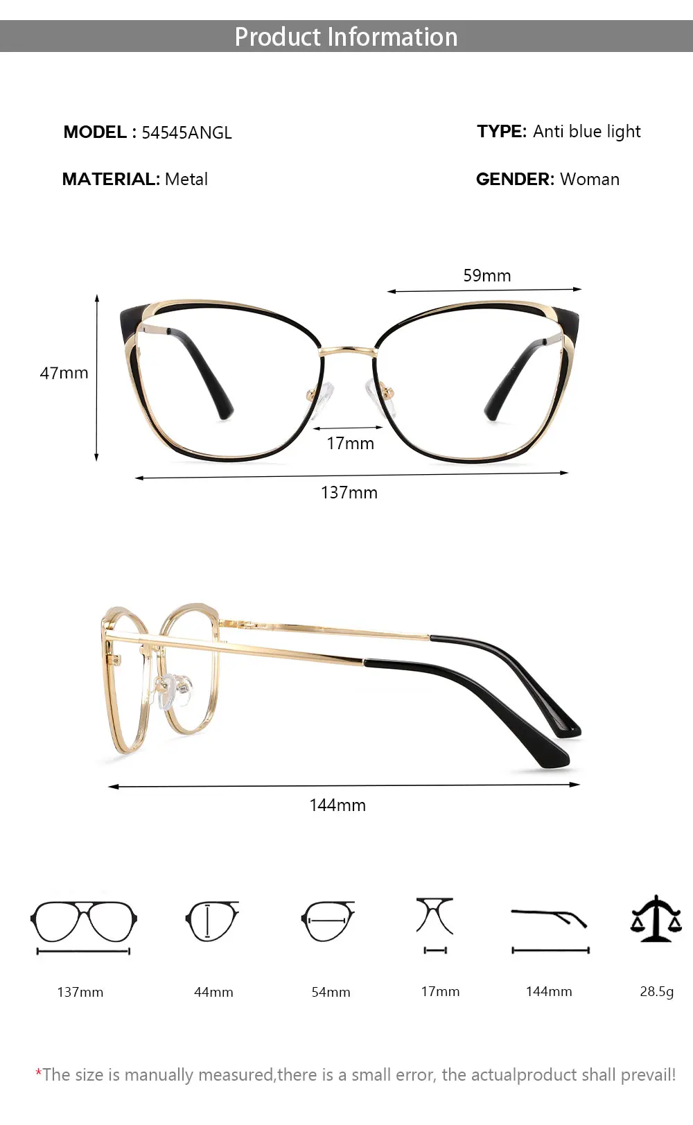 54545 Retro Metal Optical Glasses Frames Anti Blue Light Women Computer Eyeglasses Myopia Zero Glasses