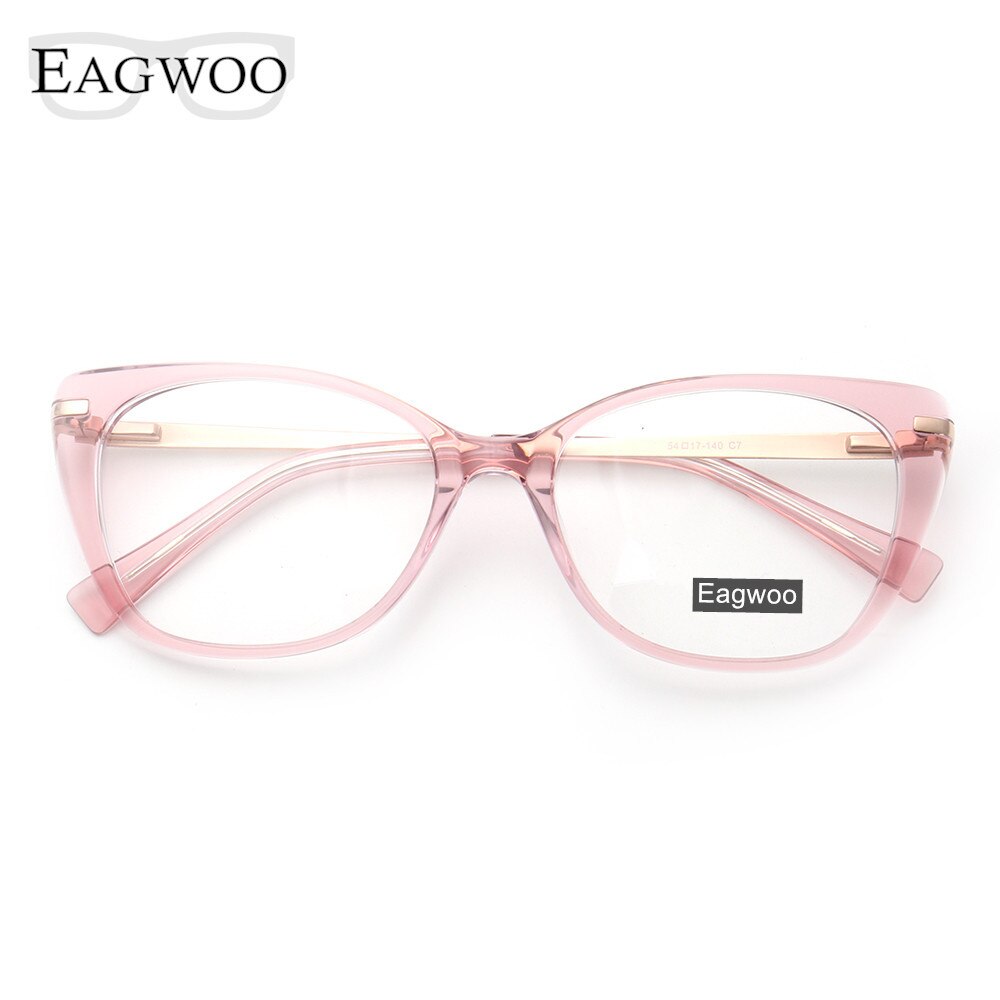 Acetate TR90 Women Female Eyeglasses Full Rim Crystal Optical Frame Prescription Plain Clear Elegant Eye Glasses