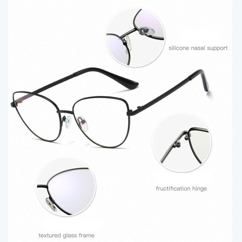 Alloy Eyeglasses Frame for Women Eyewear Full Rim Stylish Cat Eye UV400 Anti-Scratch Dust Proof Anti Radiation Coating Spectacle