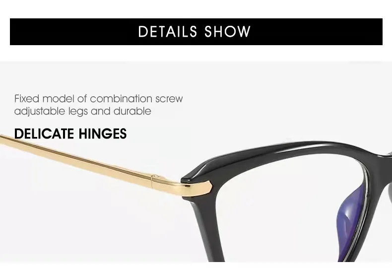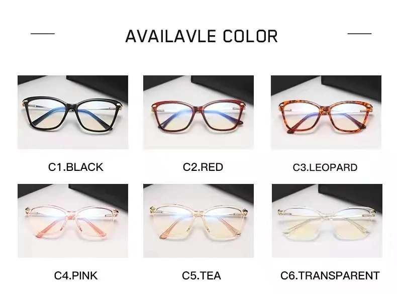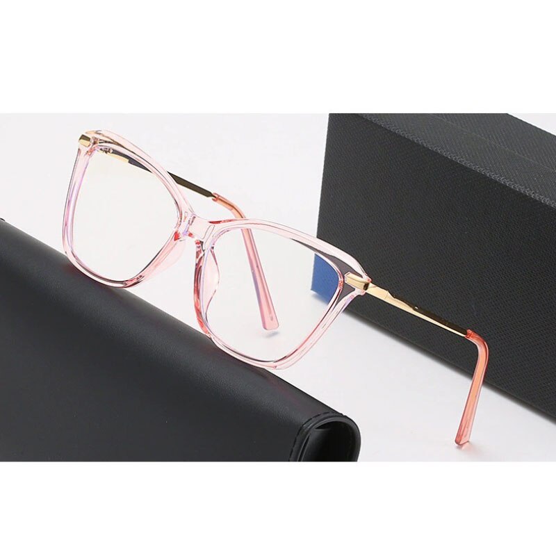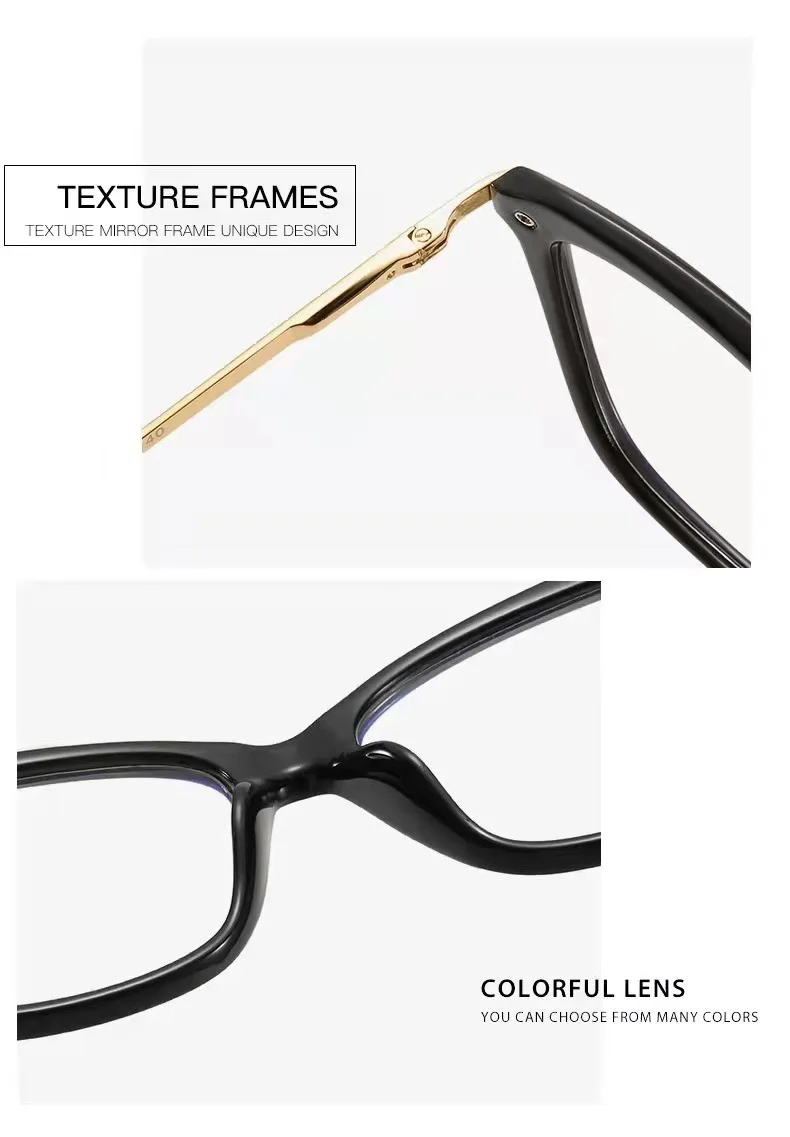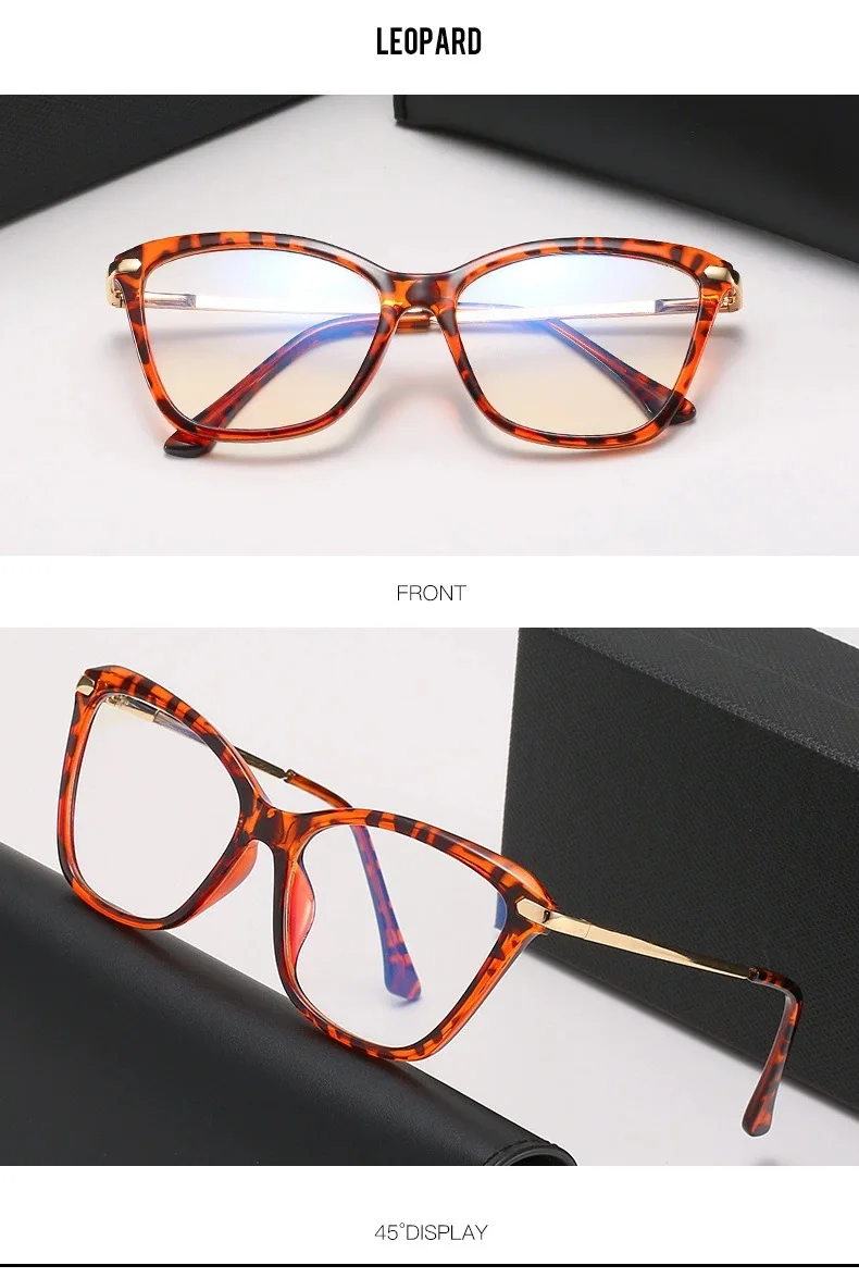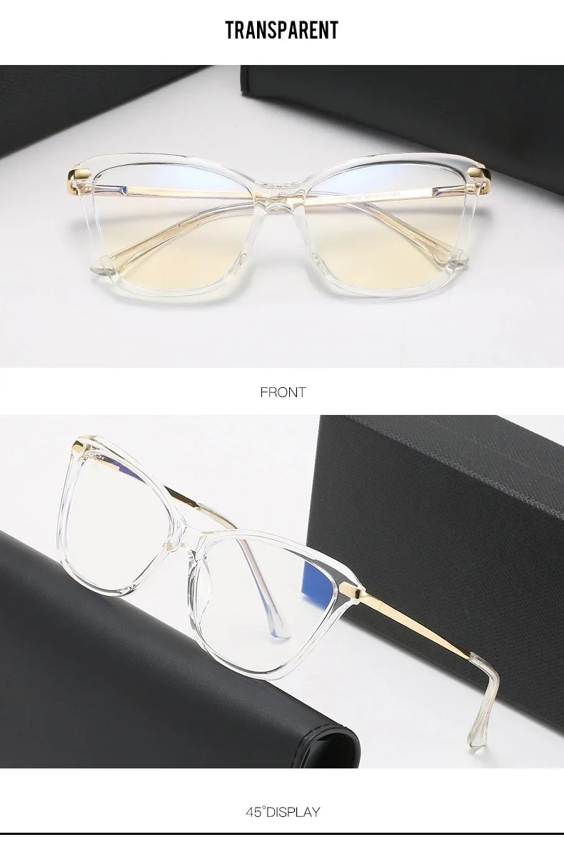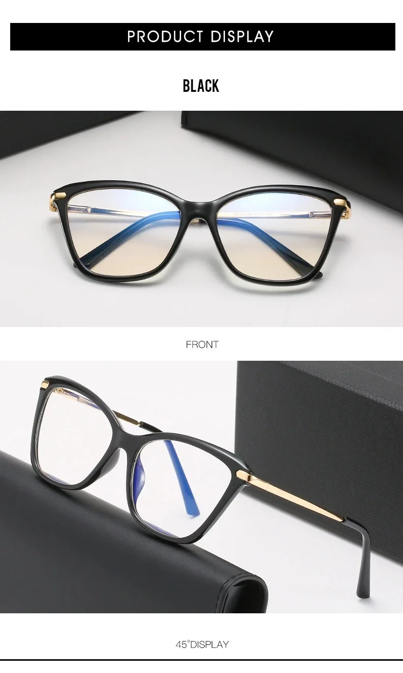 BLue Light Block Eyeglasses Women Stylish Cat Eye Optical Eyewear Full Rim Plastic Front Frame Rim and Alloy Temple Arms