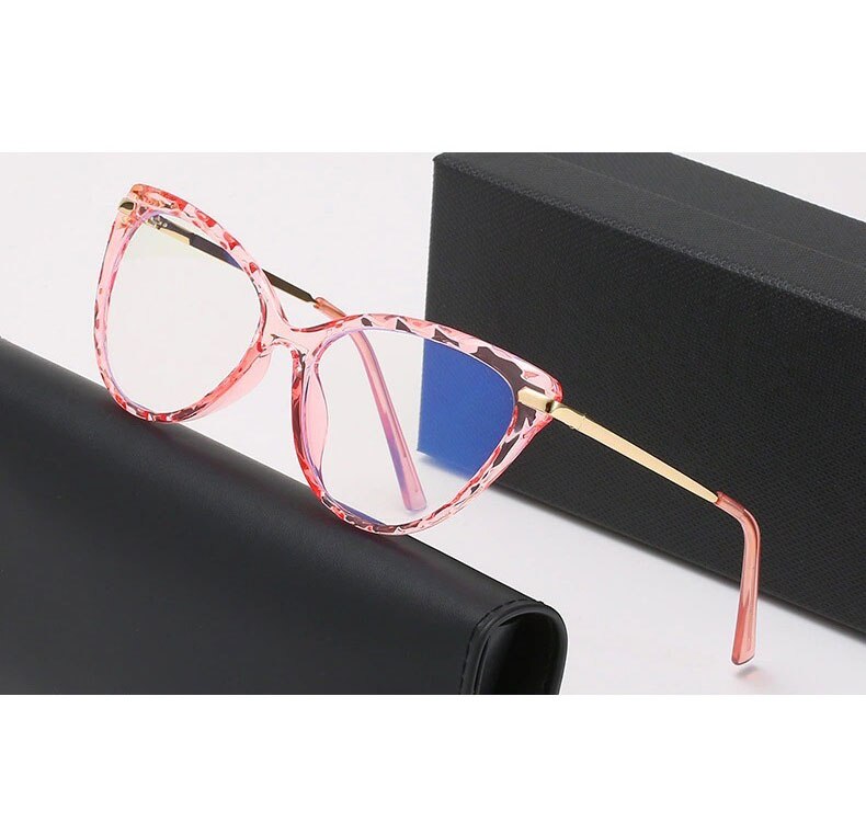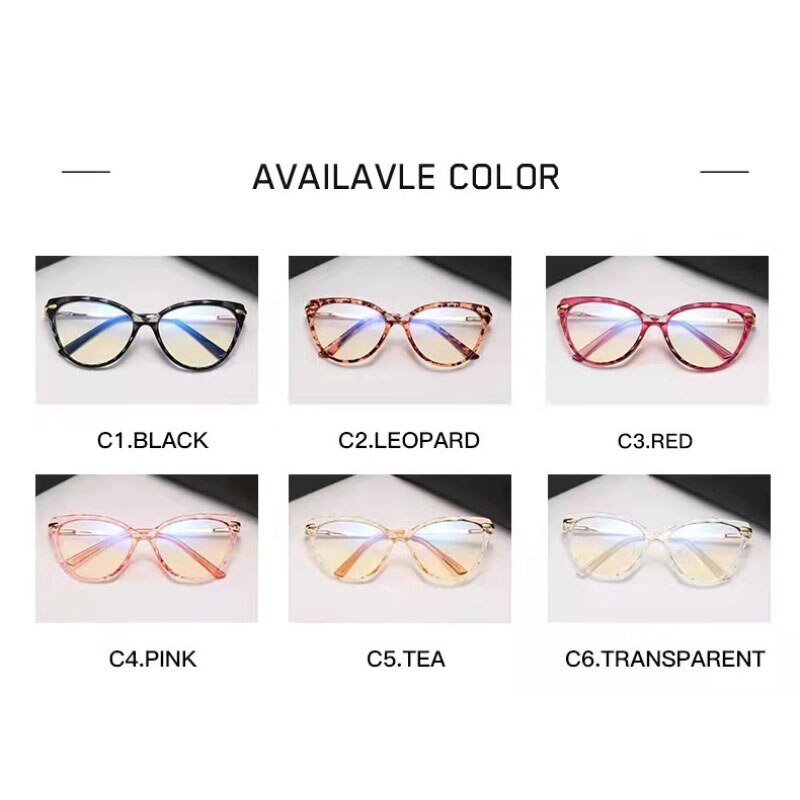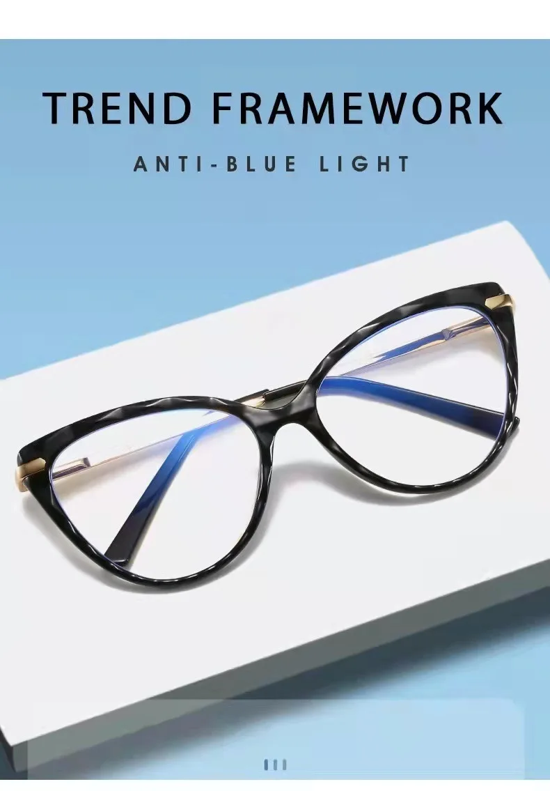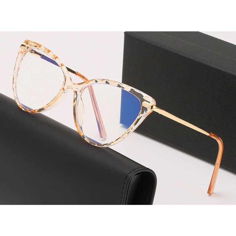 BLue Light Blocking Eyeglasses Woman Cat-Eye Optical Eyewear Full Rim Plastic Front Frame Rim and Alloy Temple Arms