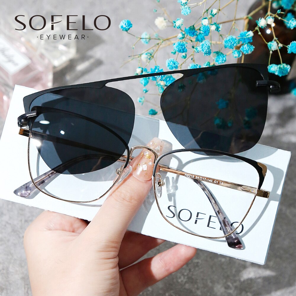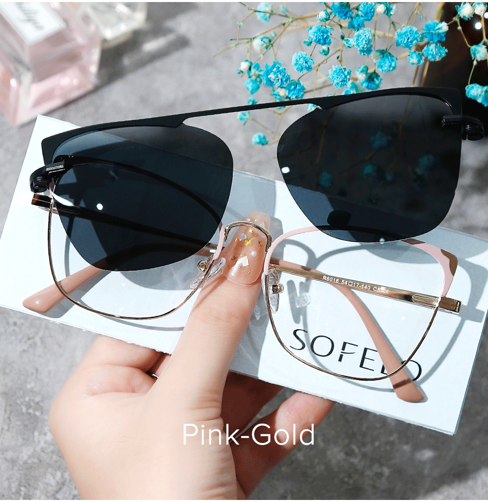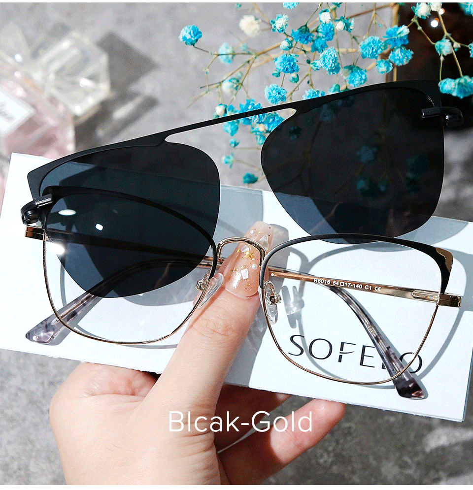 Cat Eye Optical Eyeglasses Frame Ladies 2 In1 Polarized Magnet Clip On Glasses Frame Women Myopia Prescription Frame