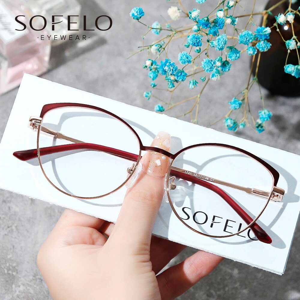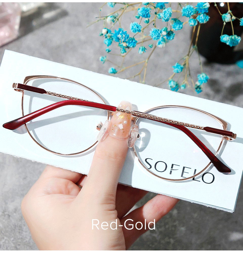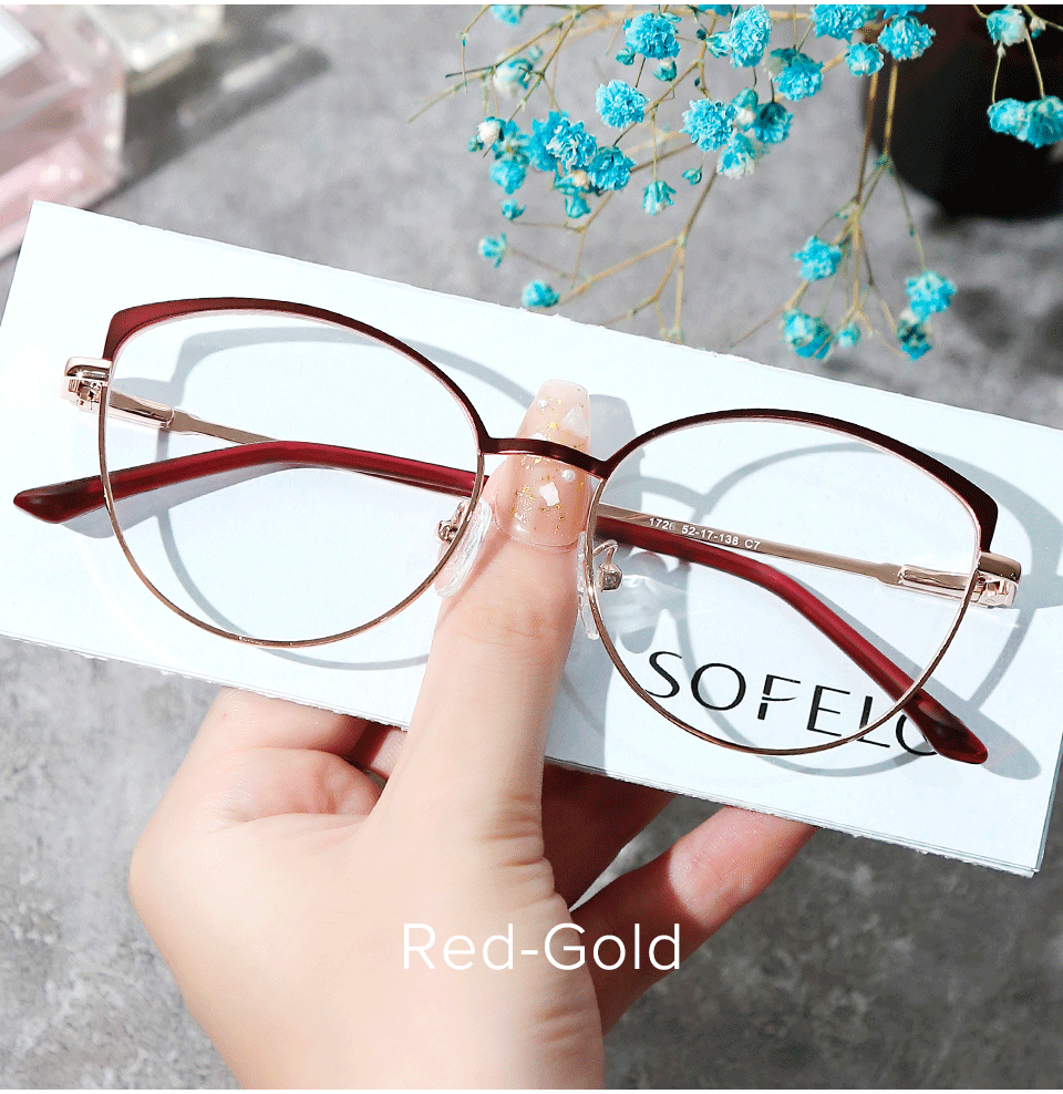 Cat Eye Optical Myopia Glasses Frame Women Prescription Eye Glasses Frame Female Red Stainless Steel Spectacles Brand