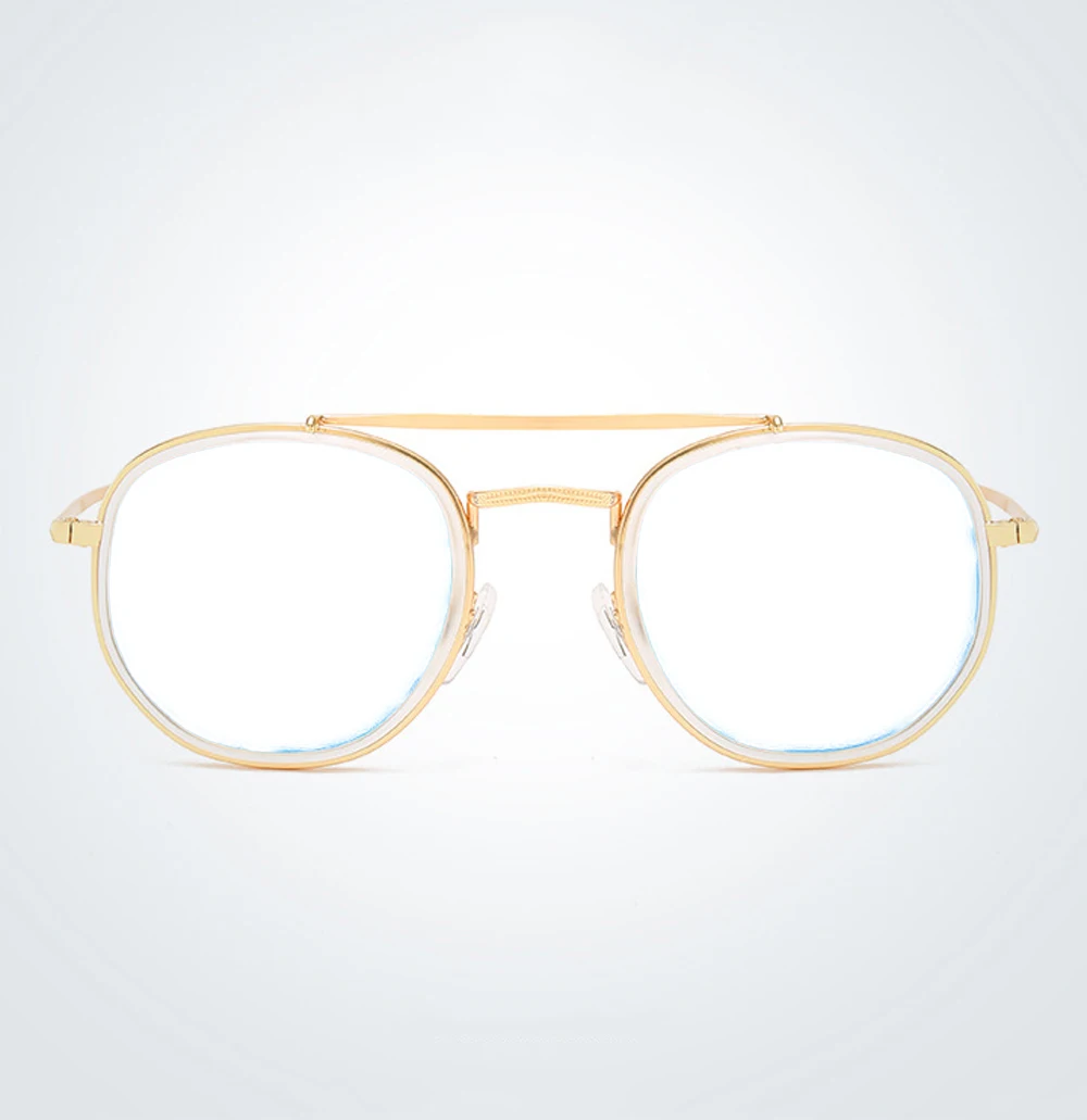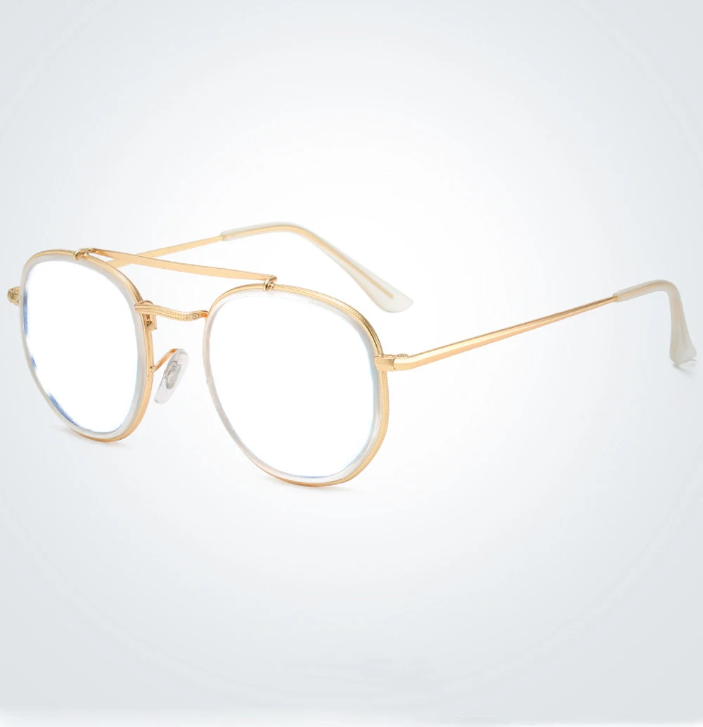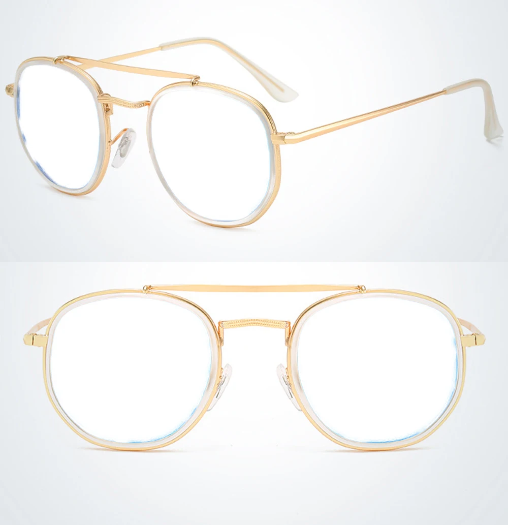 Double Bridge Round Gold Frame Retro Reading Glasses +0.75 +1 +1.25 +1.5 +1.75 +2 +2.25 +2.5 +2.75 +3 +3.25 +3.5 +3.75 +4 To+6