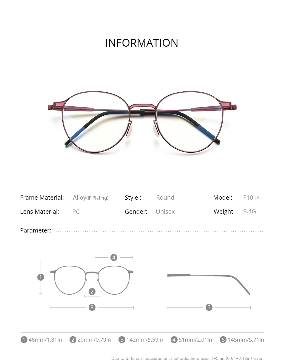 Model Number : F1014 High Quality Ultralight Antiskid Korea Japan Eye Glasses for