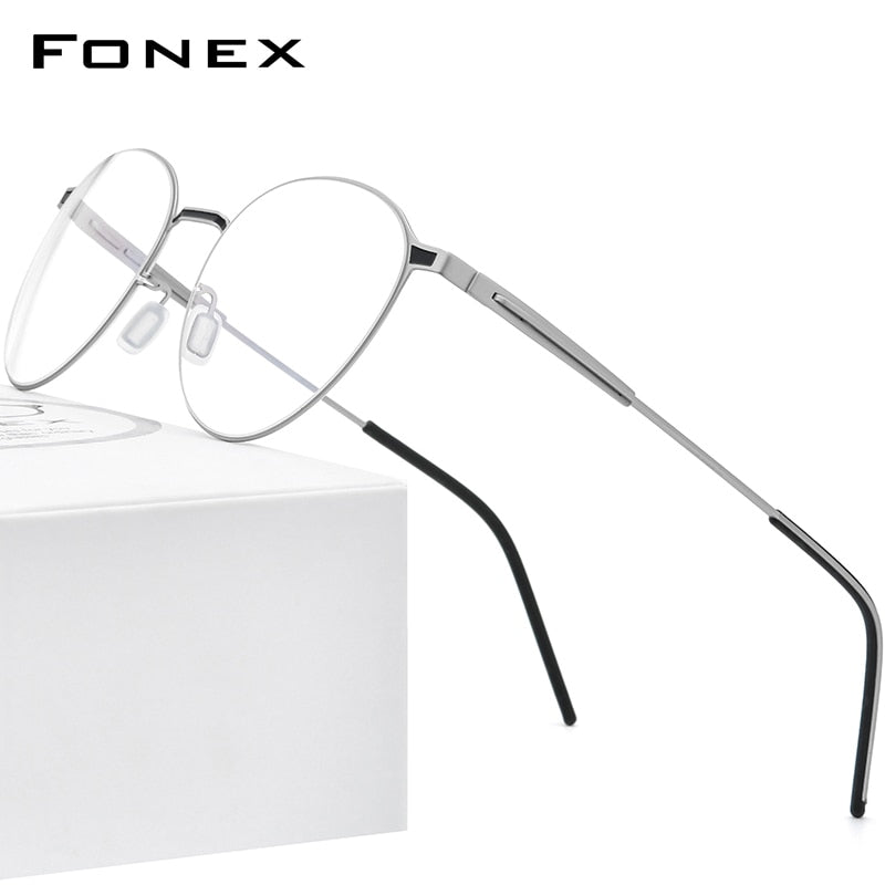 FONEX Alloy Glasses Frame Women Round Myopia Prescription Optical Eyeglasses Men 2023 Metal Full Korean Screwless Eyewear F1014