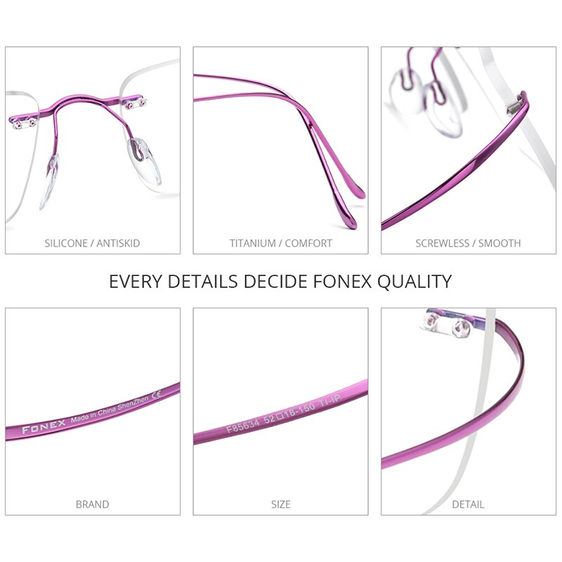 FONEX B Titanium Glasses Frame Men 2023 Women Rimless Prescription Square Eyeglasses Frames Myopia Optical Korean Eyewear F85634