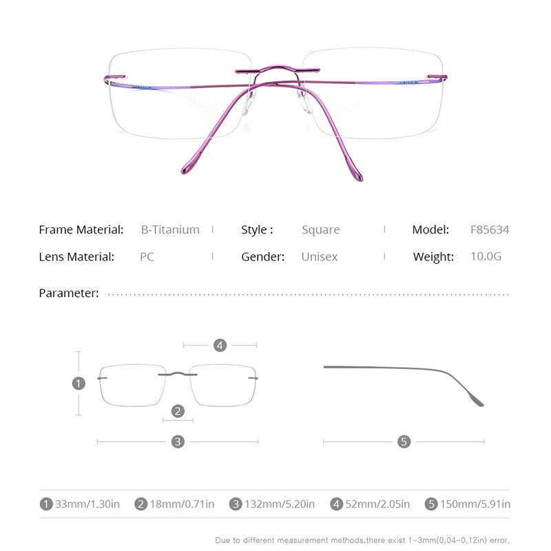 Model Number : F85634 New High Quality Ultralight Light Weight Frameless Eye Glass