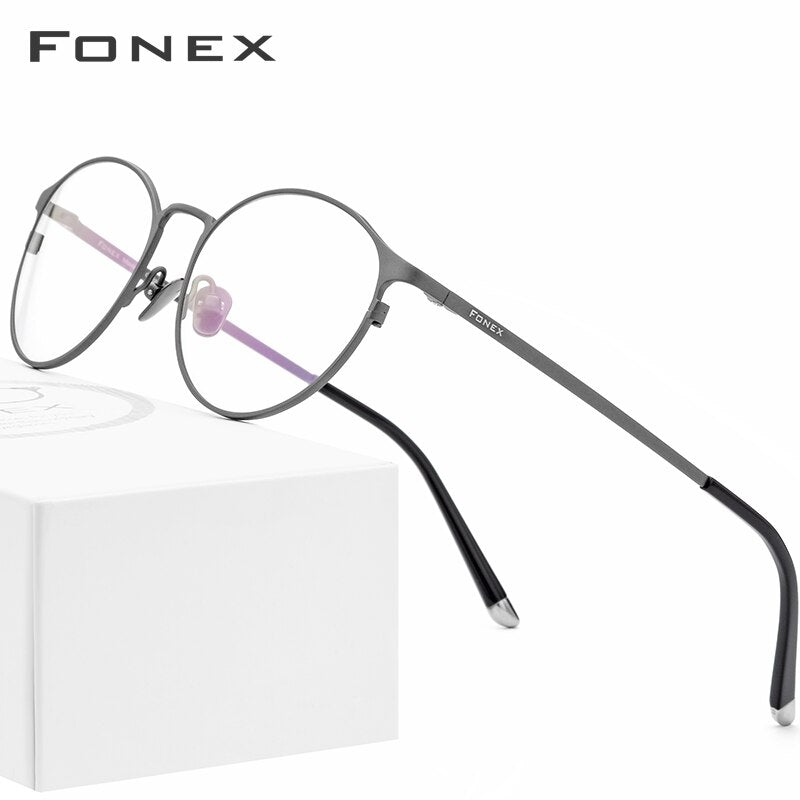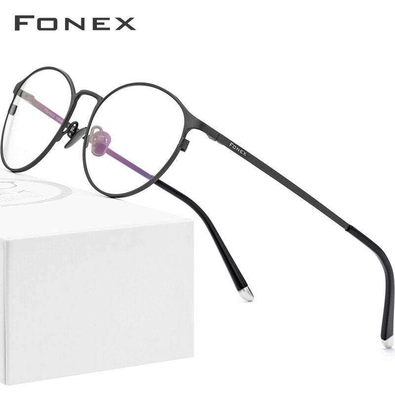 FONEX Pure Titanium Eyeglasses Frame Women Retro Round Optical Glasses Prescription Korean Eyewear Men 8501