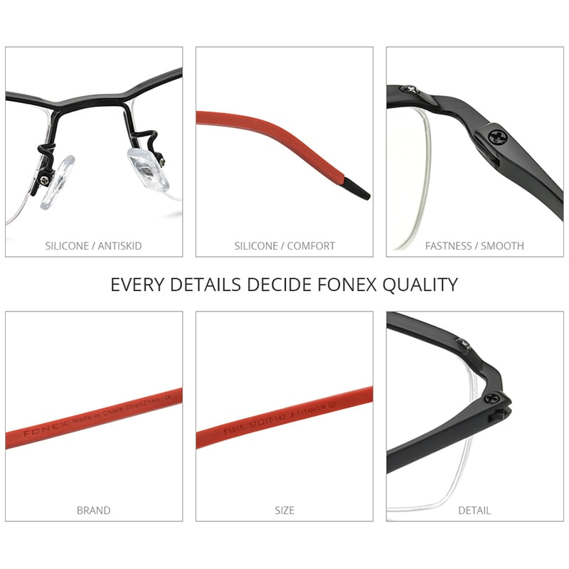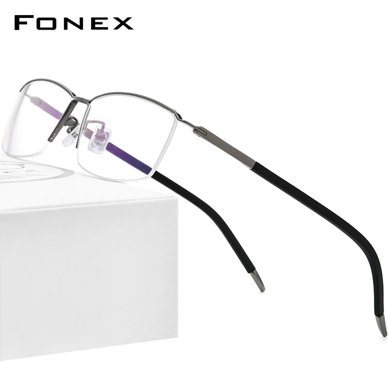 FONEX Pure Titanium Glasses Frame Men Half Square Myopia Optical Prescription Eyeglasses 2023 Semi Rimless Eyewear F1015