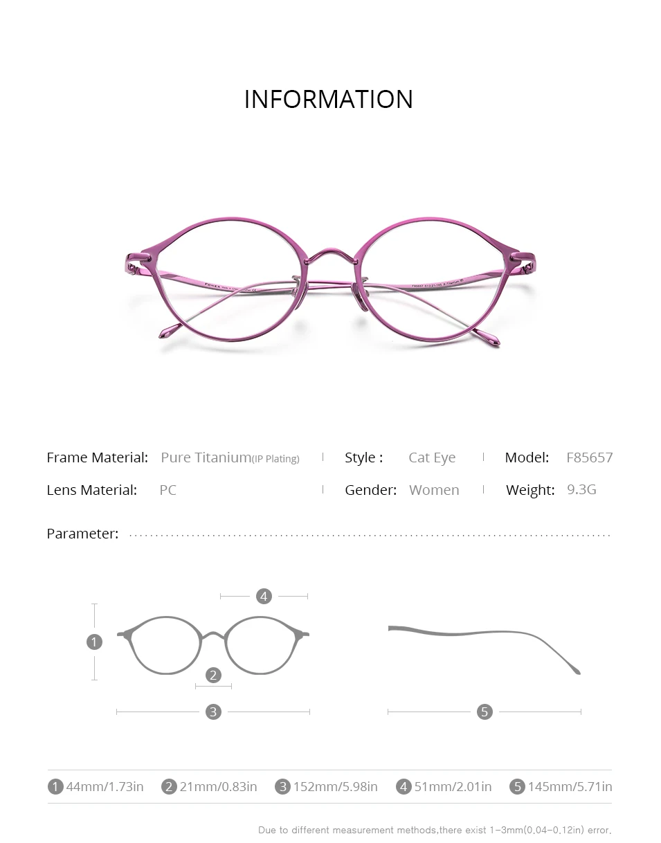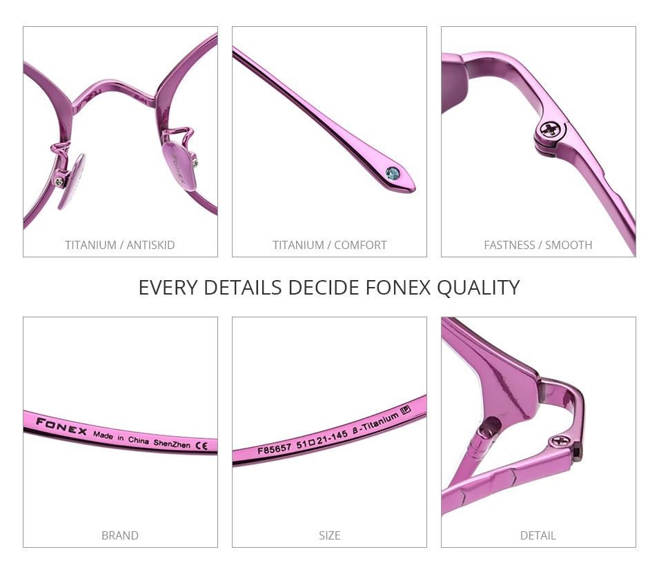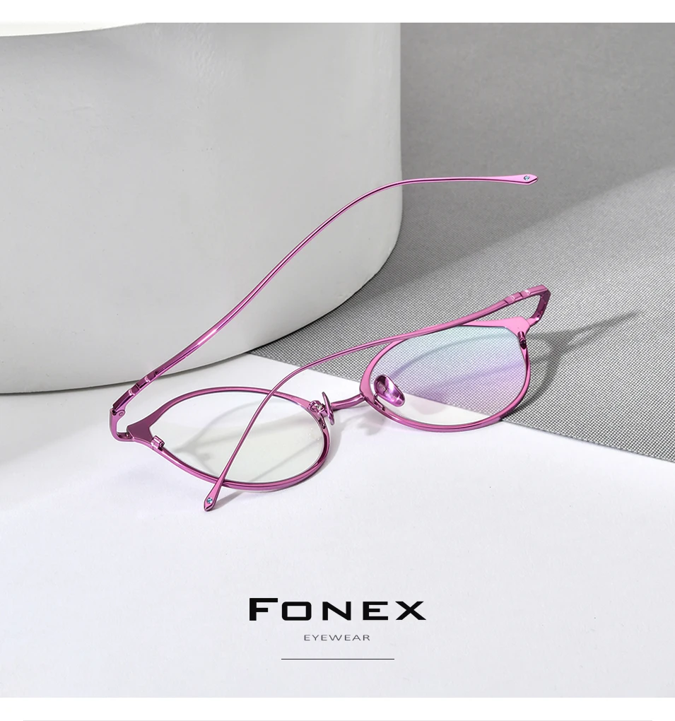 FONEX Pure Titanium Glasses Frame Women Retro Cat Eye Prescription Eyeglasses 2023 Cateye Myopia Optical Eyewear F85657