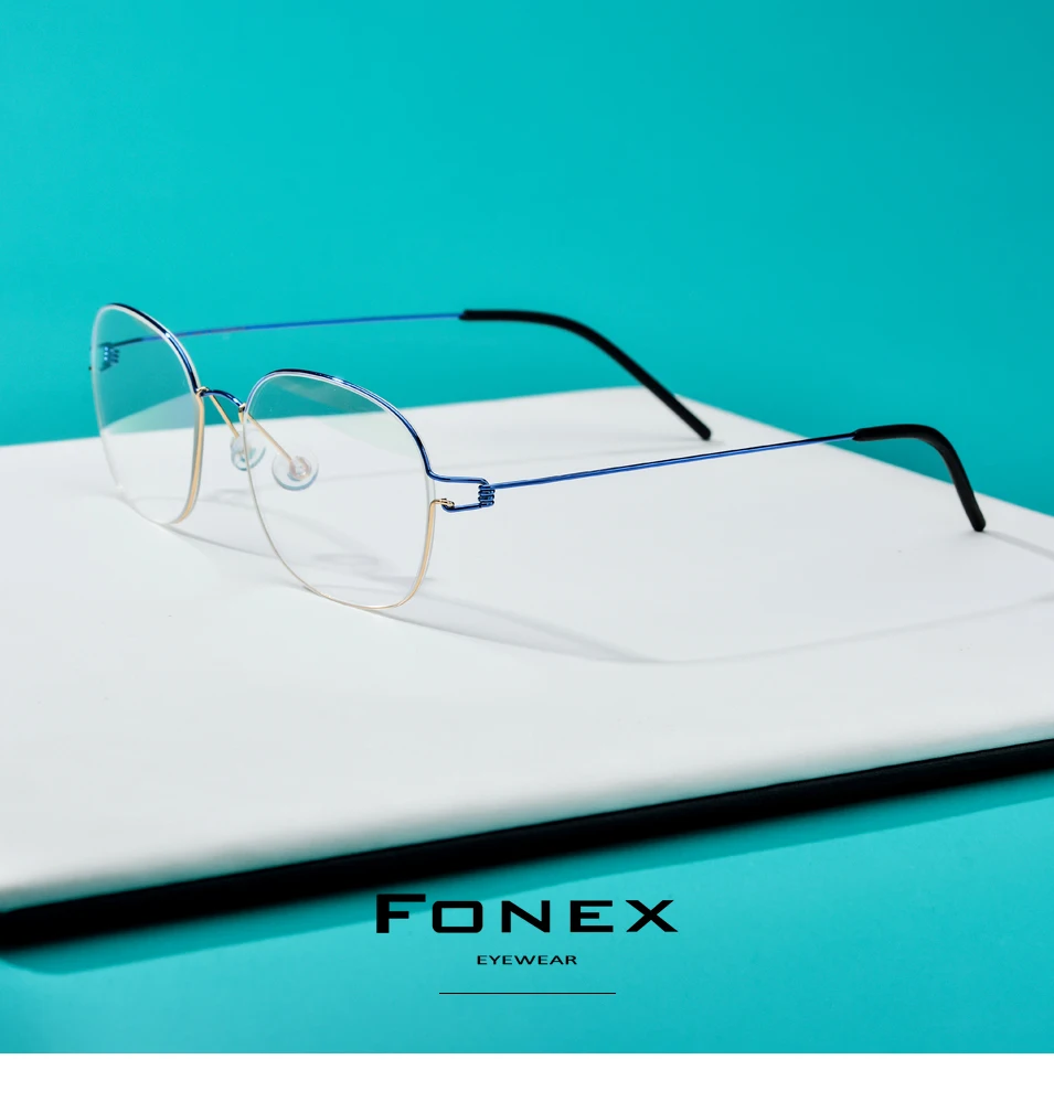 FONEX Titanium Alloy Glasses Frame Men Prescription Eyeglasses Korean Women Myopia Optical Frame Screwless Eyewear 98618