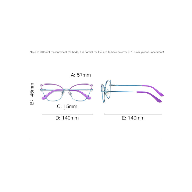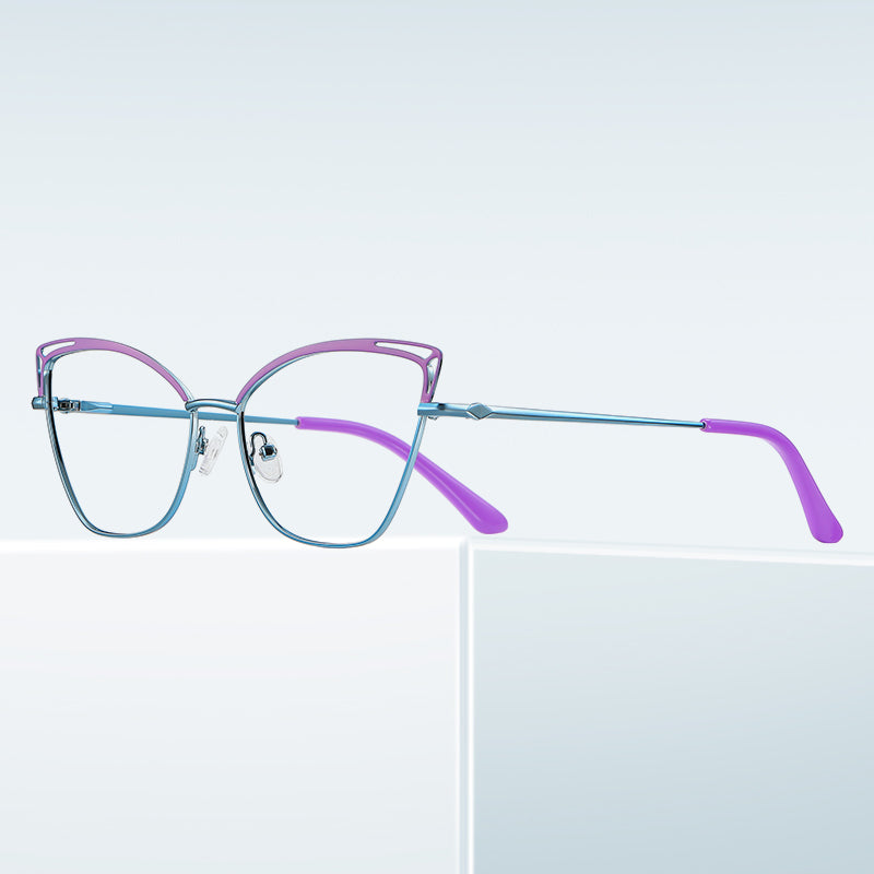 Gmei Design Blue Light Blocking Women's Cat Eye Metal Glasses Frame Female Anti Radiation Protection Eyeglasses Frames 3038