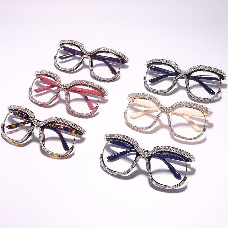 Item : Women Half frame rhinestone Glasses,Transparent Computer Glasses