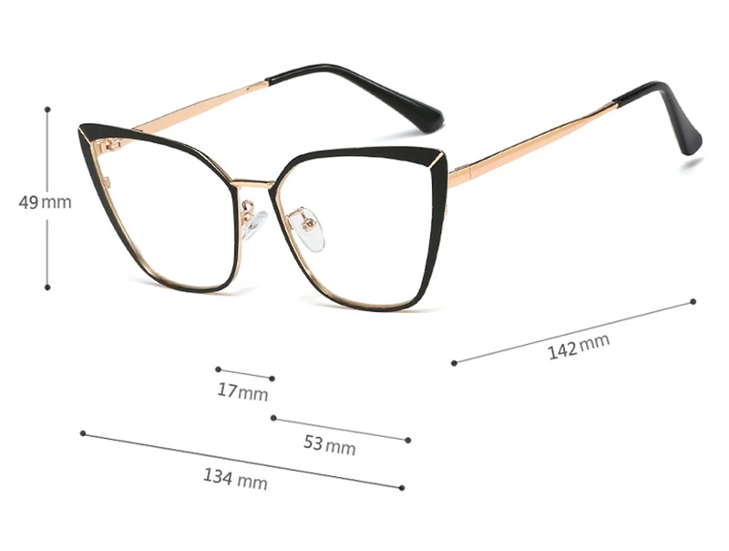 Kachawoo eyeglasses metal gold black cat eye glasses frames for women prescription accessories gift item ladies