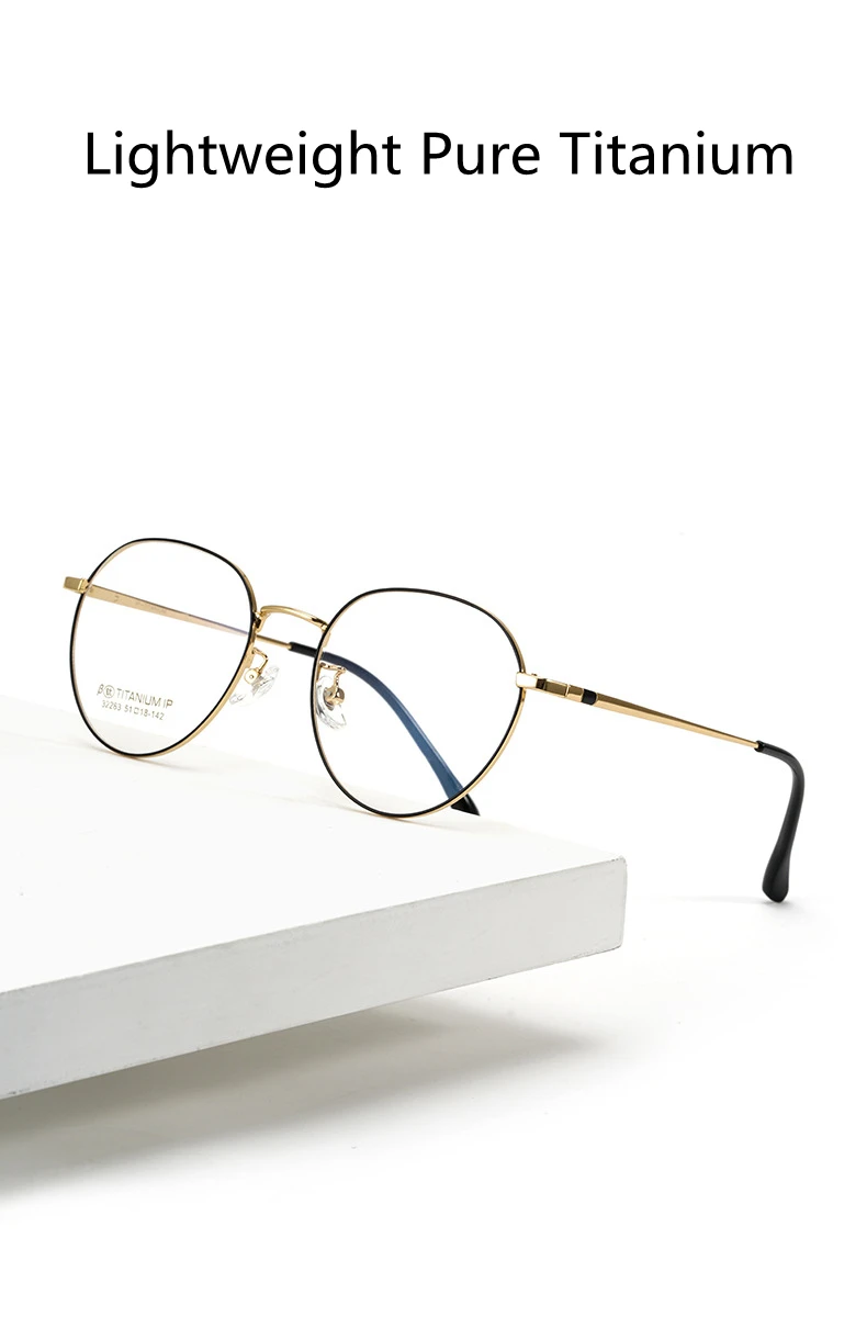 KatKani Retro Round Pure Titanium Eyeglasses Frame Ultra Light Men's and Women's Optical Prescription Spectacle Frame K32283