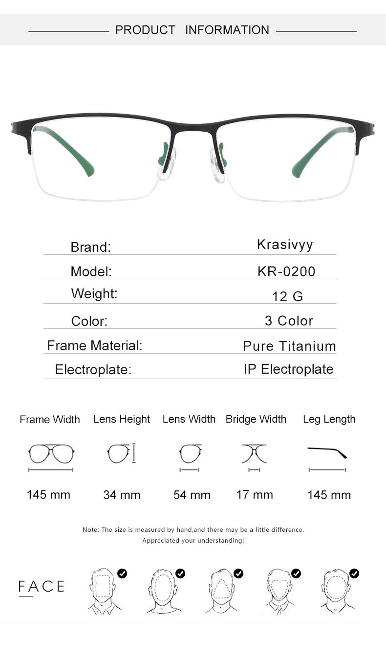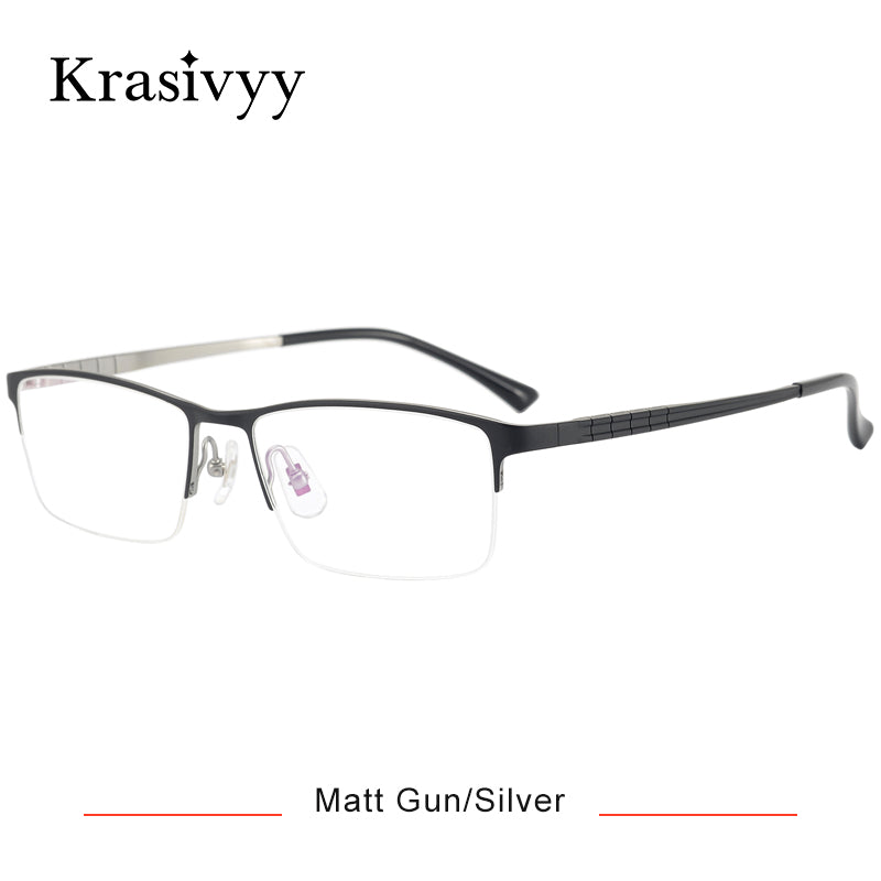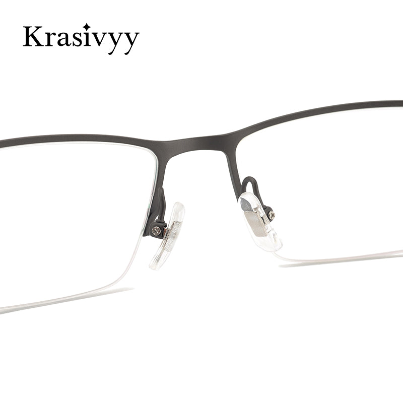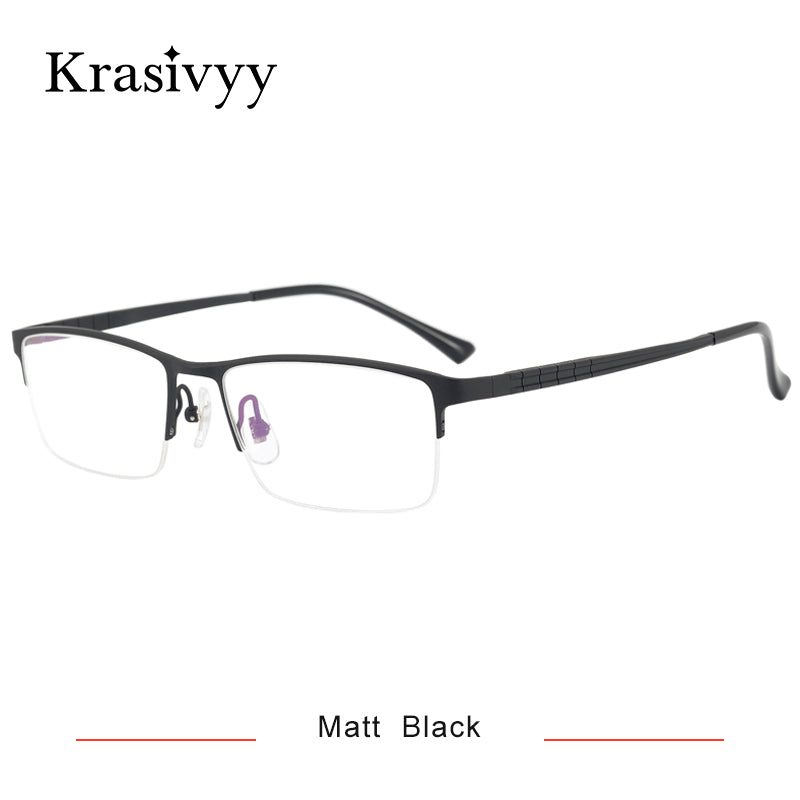 Krasivyy Pure Titanium Glasses Frame Men Square Male Semi Rim Myopia Prescription Eyewear 2023 Korean Optical Eyeglasses