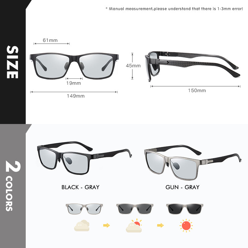 LIOUMO  Photochromic Polarized Sunglasses For Men Women Carbon Fiber Frame Square Glasses UV400 lentes de sol hombre