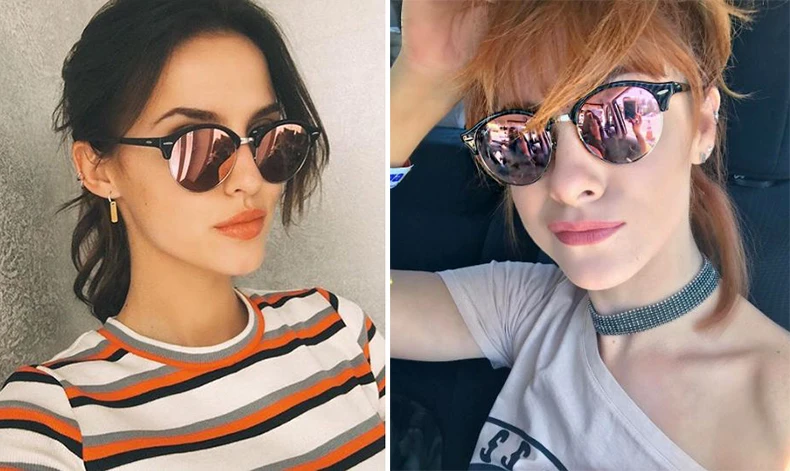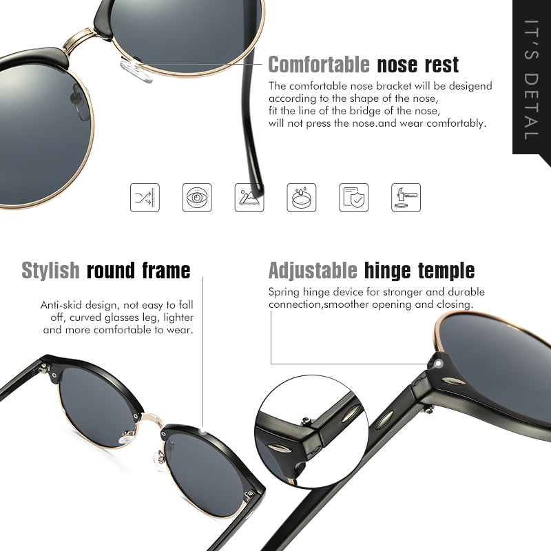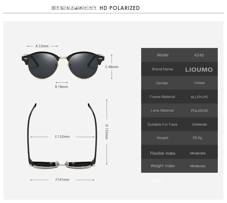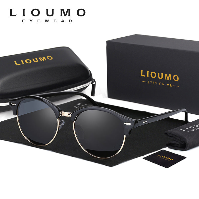 LIOUMO Round Sunglasses For Men Polarized Women Cat Eye Glasses Classic Rivet Frame Anti-Glare Driving Goggles lunette de soleil
