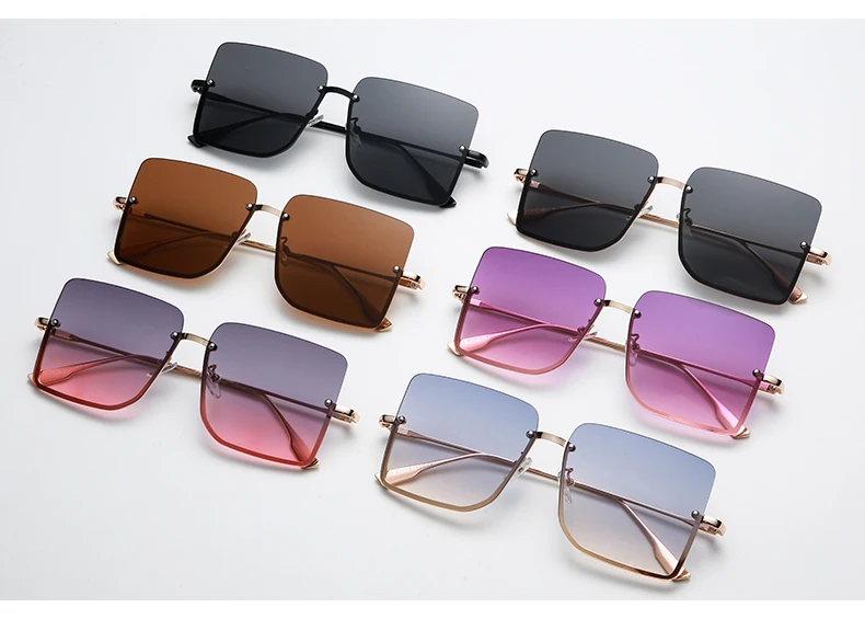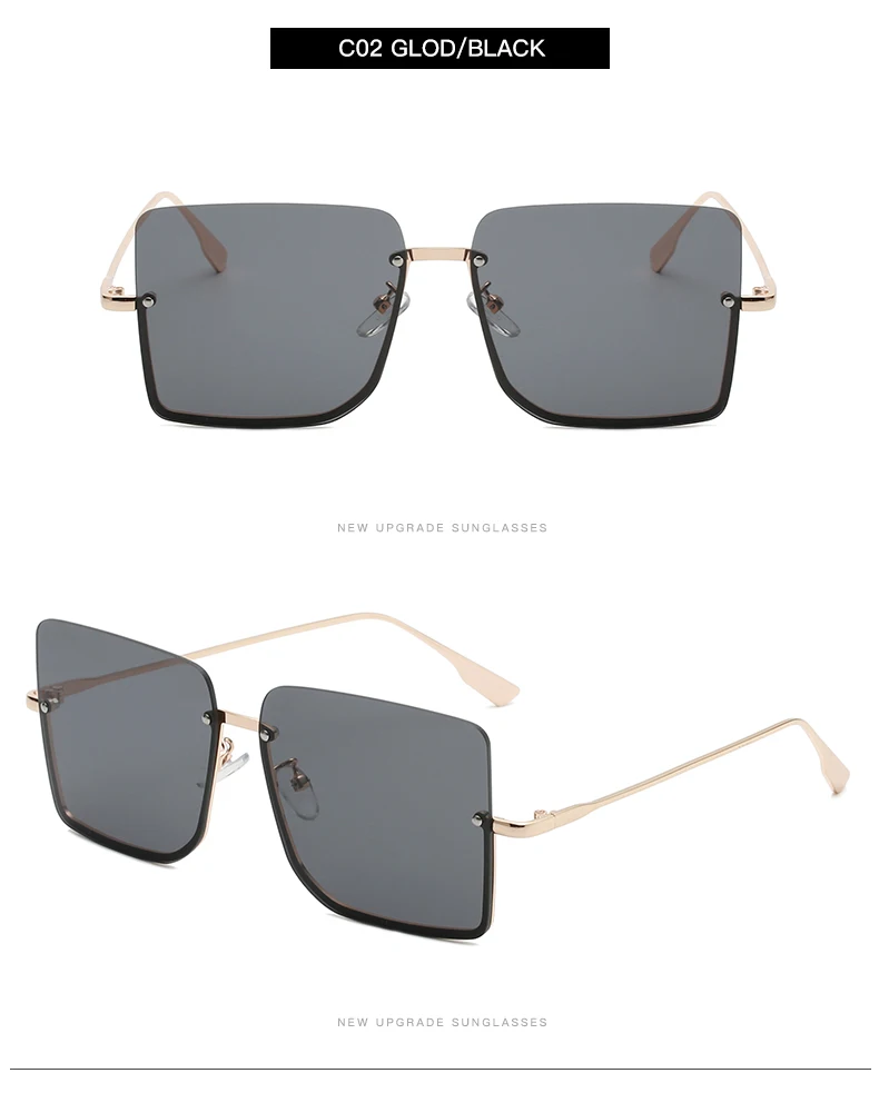 LongKeeper Square Rimless Oversized Sunglasses Half Frame Sun Glasses Women Brand Retro Eyewear Oculos De Sol