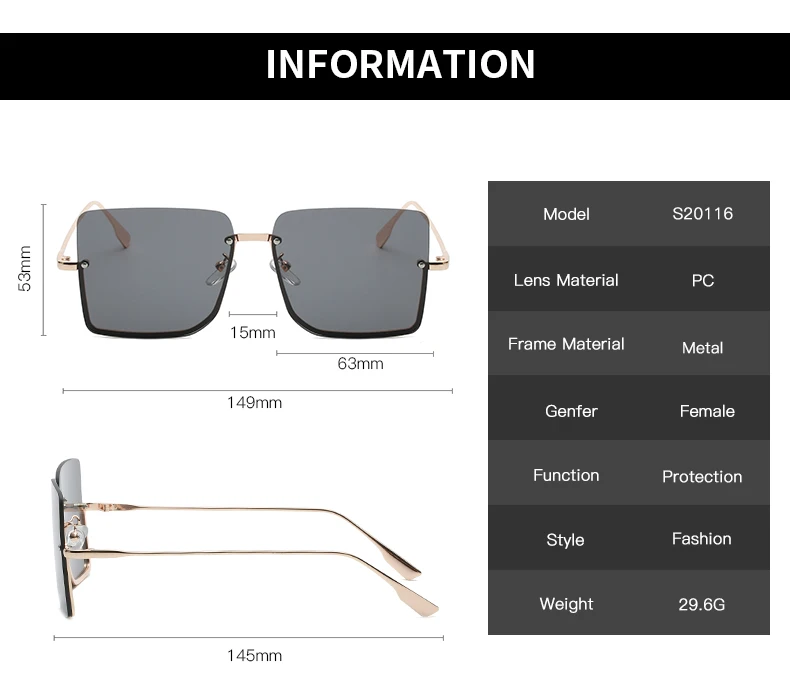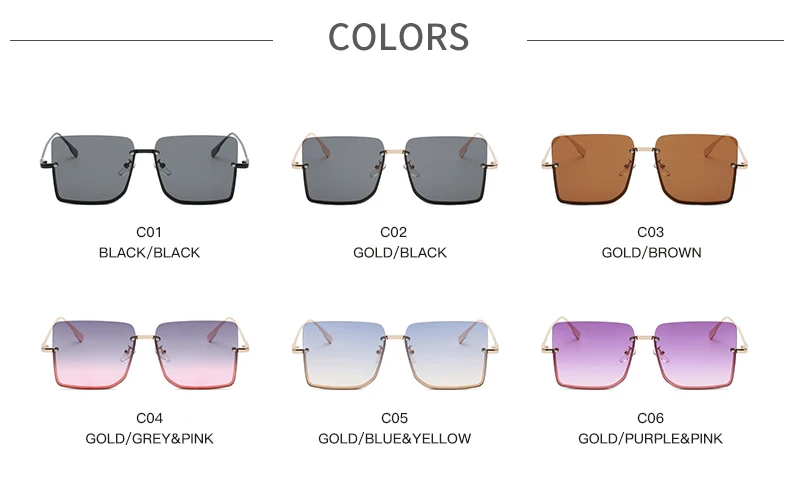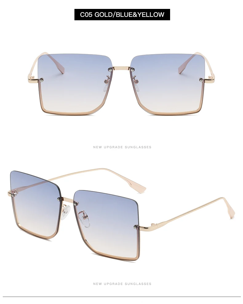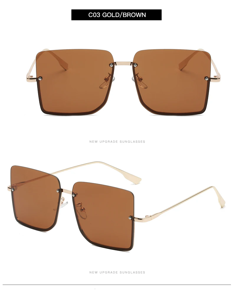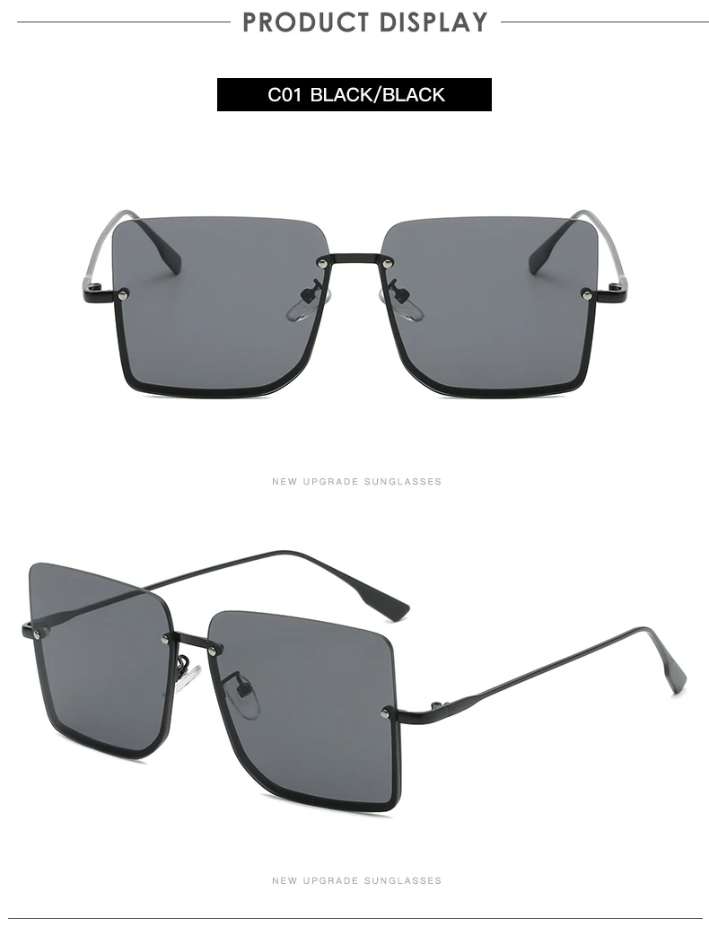 LongKeeper Square Rimless Oversized Sunglasses Half Frame Sun Glasses Women  Brand Retro Eyewear Oculos De Sol