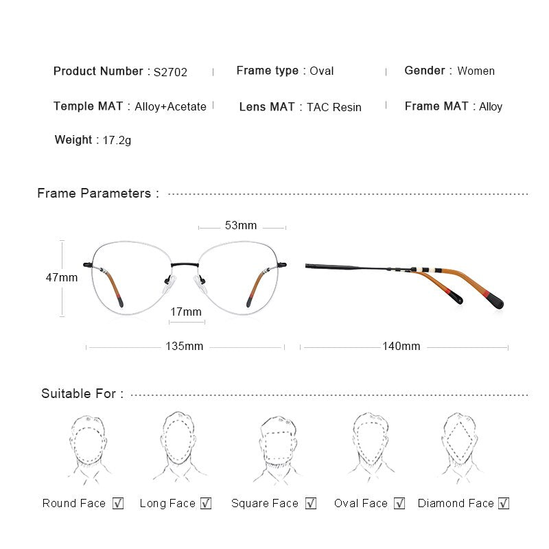 MERRYS DESIGN Women Classic Titanium Alloy Retro Oval Glasses Frames Frame Eyeglasses Ultralight Frame S2702
