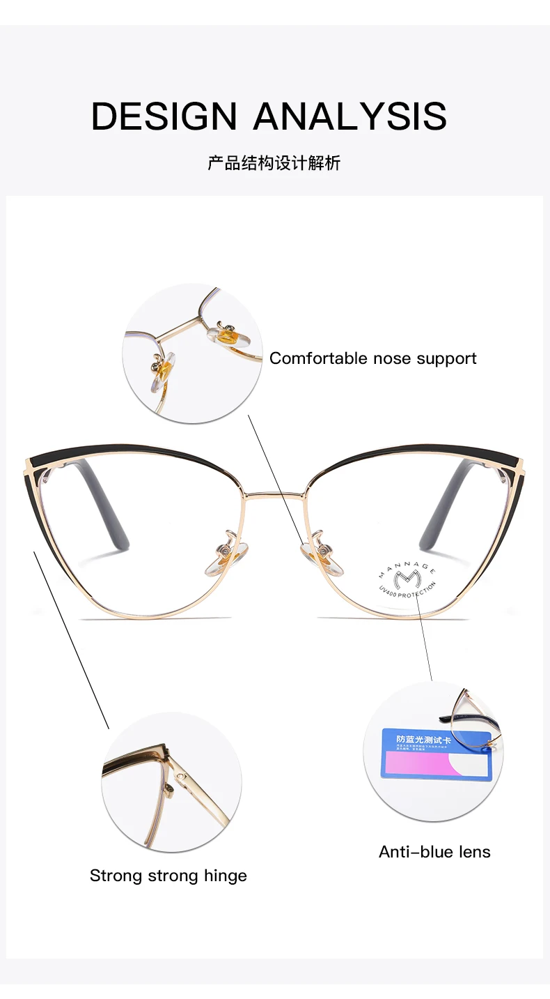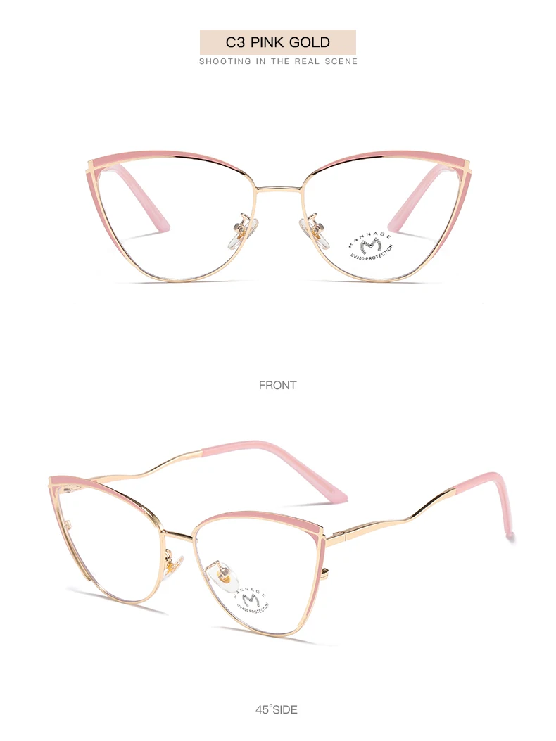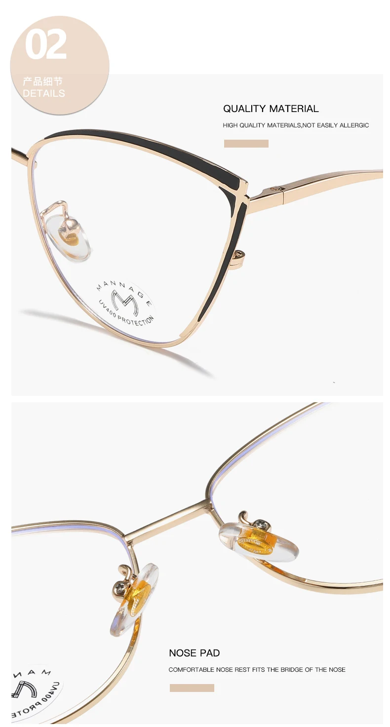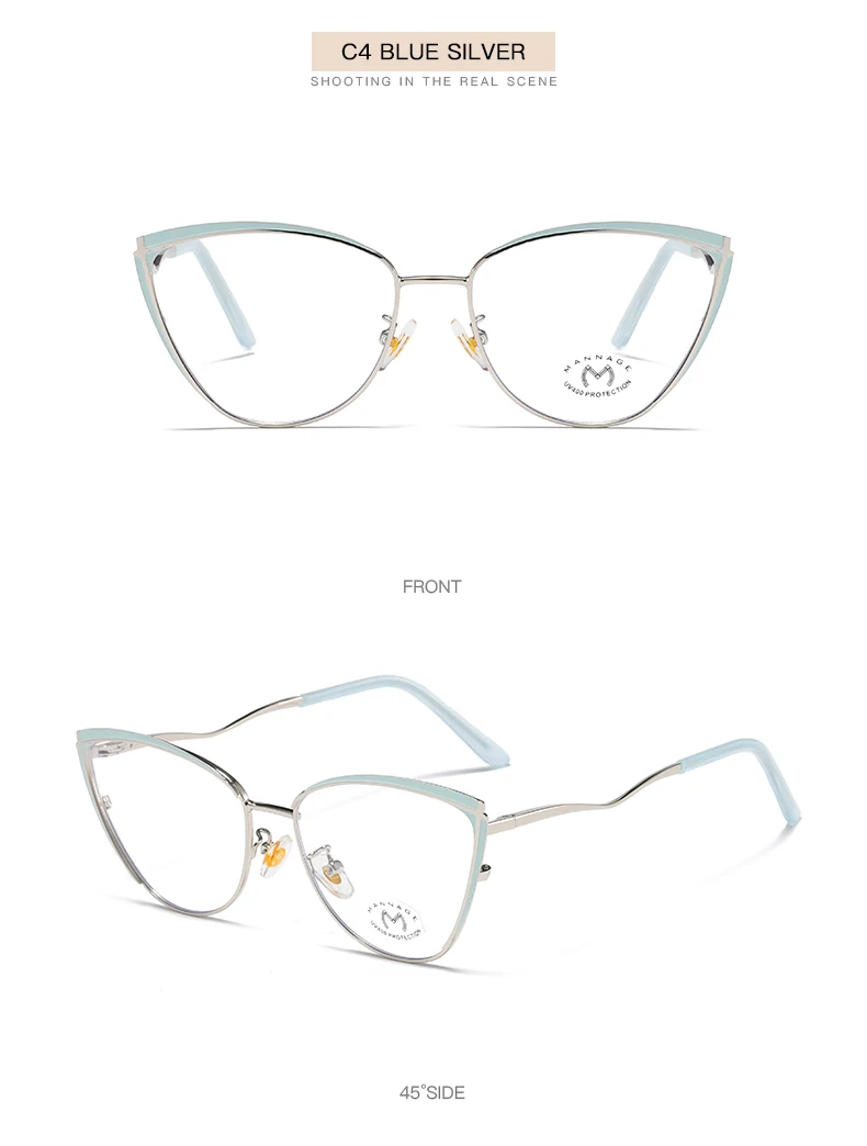 Metal Anti Blue Ray Cat Eye Glasses Frame Men Women Blue Light Blocking Eyeglasses Ladies Optical Frame