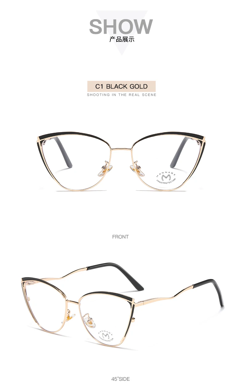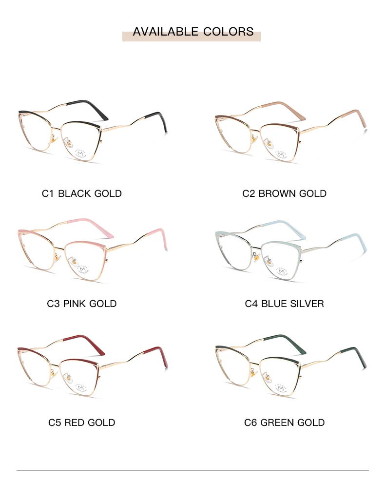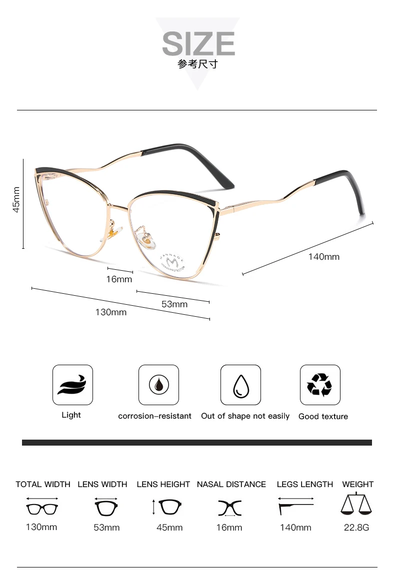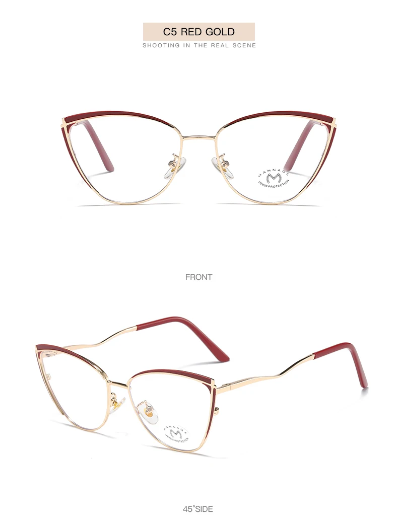 Metal Anti Blue Ray Cat Eye Glasses Frame Men Women Blue Light Blocking Eyeglasses Ladies Optical Frame