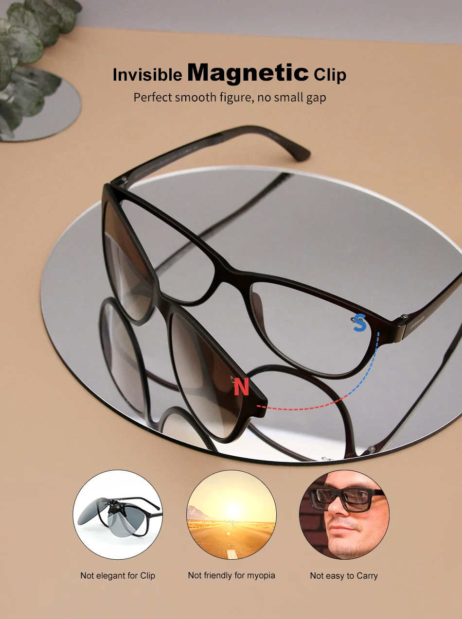 MU.0222 2 In 1 Magnet Polarized Clip Glasses Frame Woman Optical Myopia Glasses For Woman Eyeglasses Frame